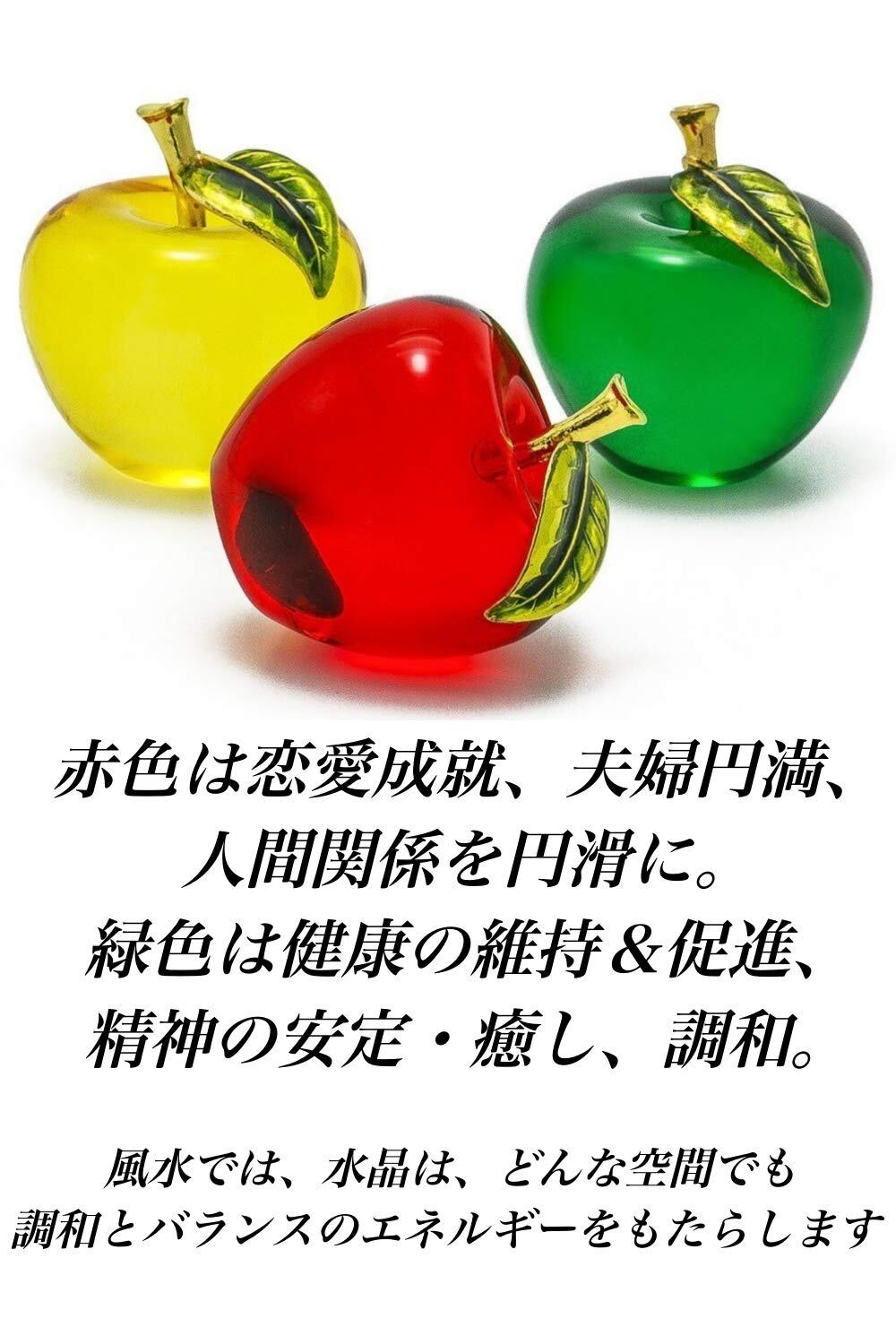 (Twin-happiness) クリスタル アップル 水晶 リンゴ ペーパーウェイト 開運 風水 インテリア 置物 ギフト<br><br>K9のクリスタル ガラス使用の可愛いりんごのオブジェ。赤い林檎と緑のアップルです。<br>水晶なのでサンキャッチャーのように光を受けるとキラキラしてとても綺麗です。インテリア、装飾 置物にぴったりです。<br>風水では水晶はどんな空間でも調和とバランスのエネルギーをもたらすと言われてます。お好きな場所に置いてプラスの気の調和を感じてください。<br>赤色は恋愛成就、夫婦円満、人間関係を円滑に。緑色は健康の維持、促進、精神の安定、癒し、調和と考えられています。<br>親や友人の誕生日、オフィスや引っ越し、ウェディングのプレゼント、車やホーム 飾り、クラフトデコレーション、ペーパーウェイトなど開運グッズ、インテリアとしてお楽しみください。<br>