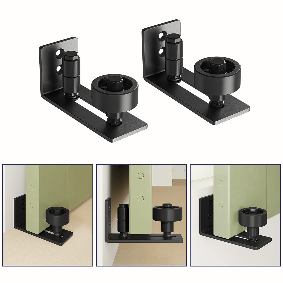 SMARTSTANDARD 調節可能なフロアガイド すべてのスライド式納屋ドア用 - DIYをする方のための8つのセットアップオプション - フラッシュデザインボトムフラットステイローラー(2個セット)