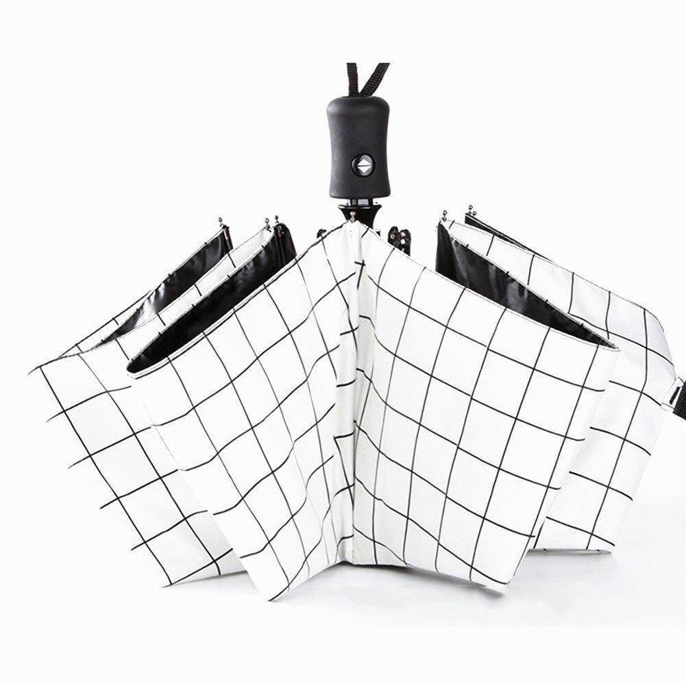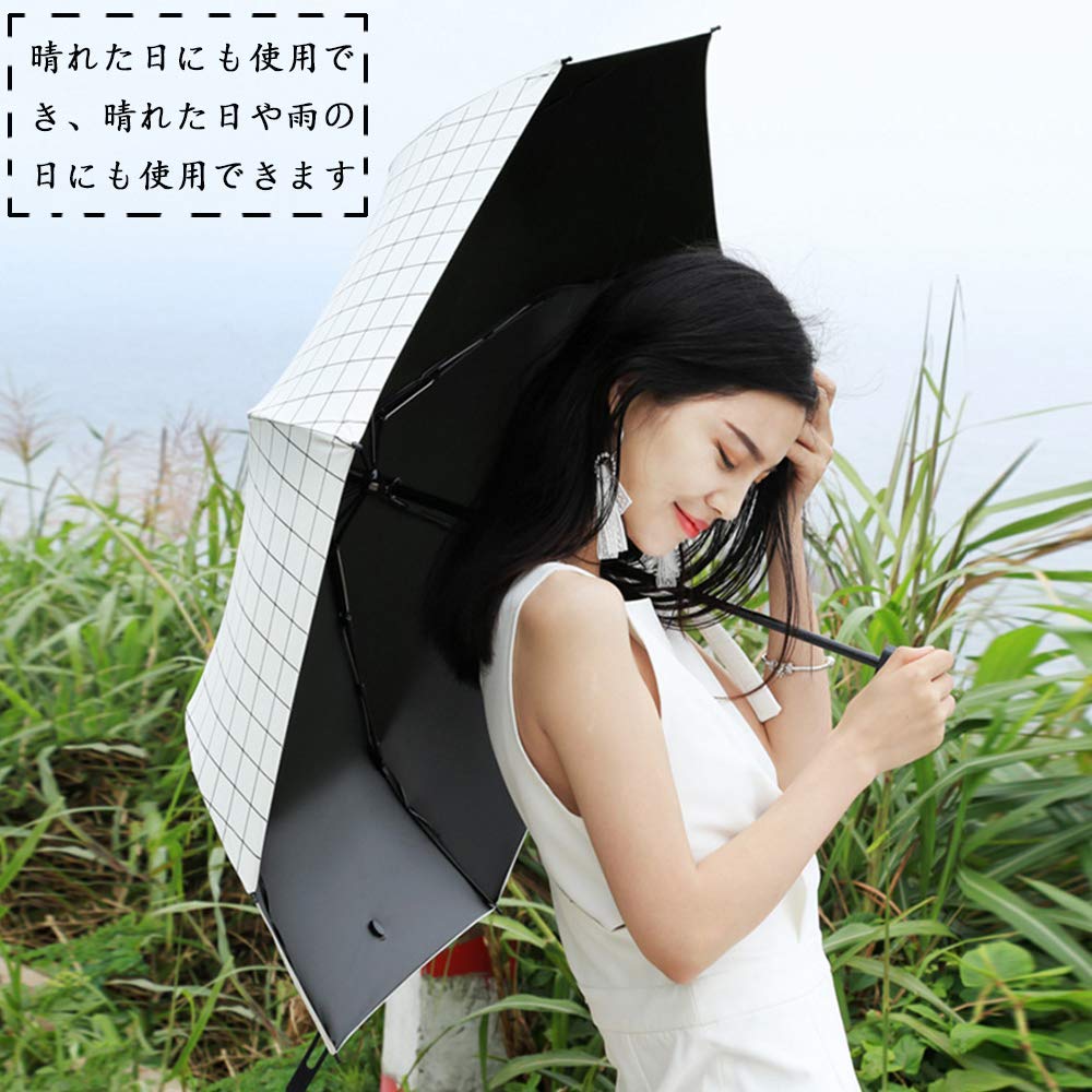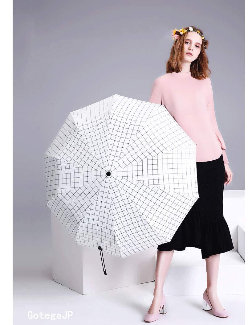 Gotega 白チェック柄 折りたたみ傘 自動開閉 日傘 UVカット 遮光率99% 晴雨兼用 旅行 アウトドア用 高強度グラスファイバー8本骨 耐風撥水