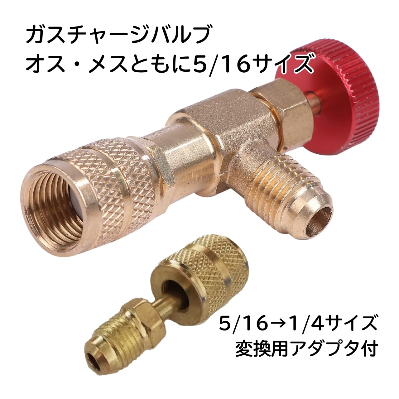 口径サイズ:チャージバルブ本体 接続口径 5/16(オスメス共に) 変換アダプタ メス側5/16 オス側1/4