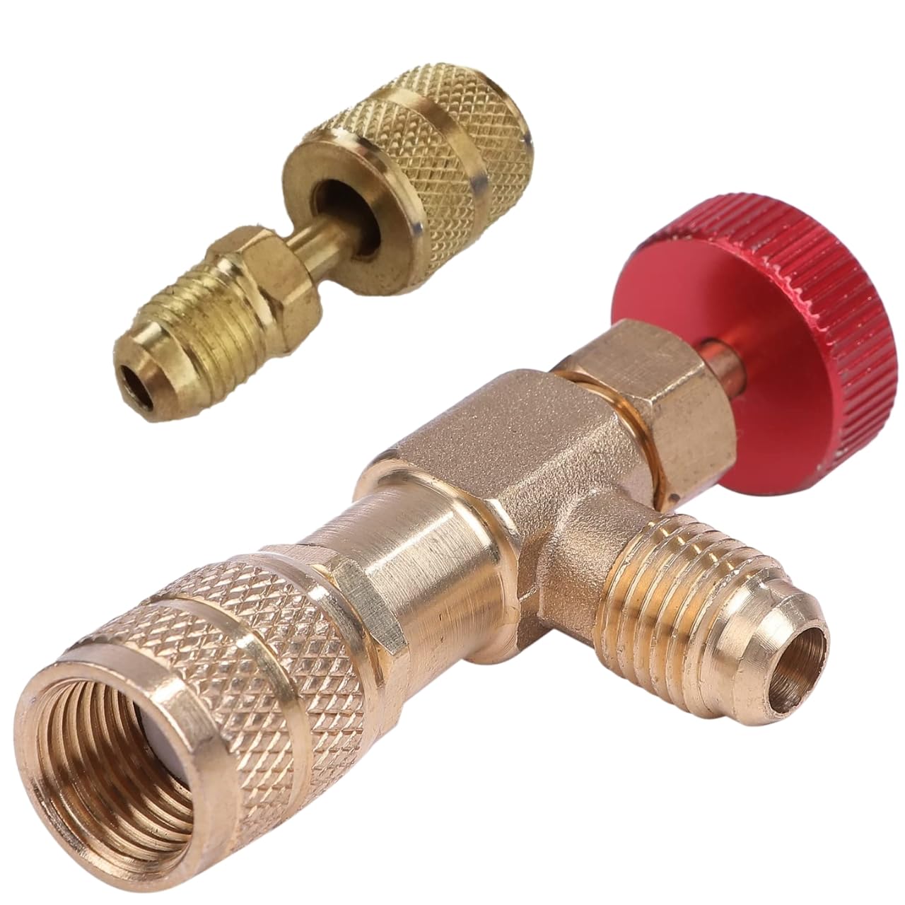 ヒロワールドトレード ガスチャージバルブ エアコン 真空引き R410a R32 サイズ 1/4 変換バルブ コントロール セット (5/16オス・5/16メス アダプタ付)