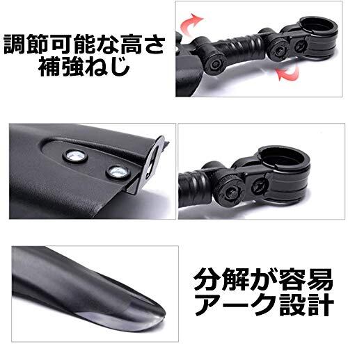 超軽量で性能に影響がほとんどなく、取り付けも取り外しも簡単。<br> 簡単に取り付ける、リアマッドガードの高さを調整、一つは前輪用と一つは背面用。<br> すべての種類のマウンテンバイク、ロードバイク、折り畳み自転車などに適しています。<br><br> ご注意:光撮影やディスプレイによって、実際の商品の色やサイズとウェブサイトのが若干異なる場合があるかもしれません。また測定許容誤差の範囲は /- 1-3cmです。