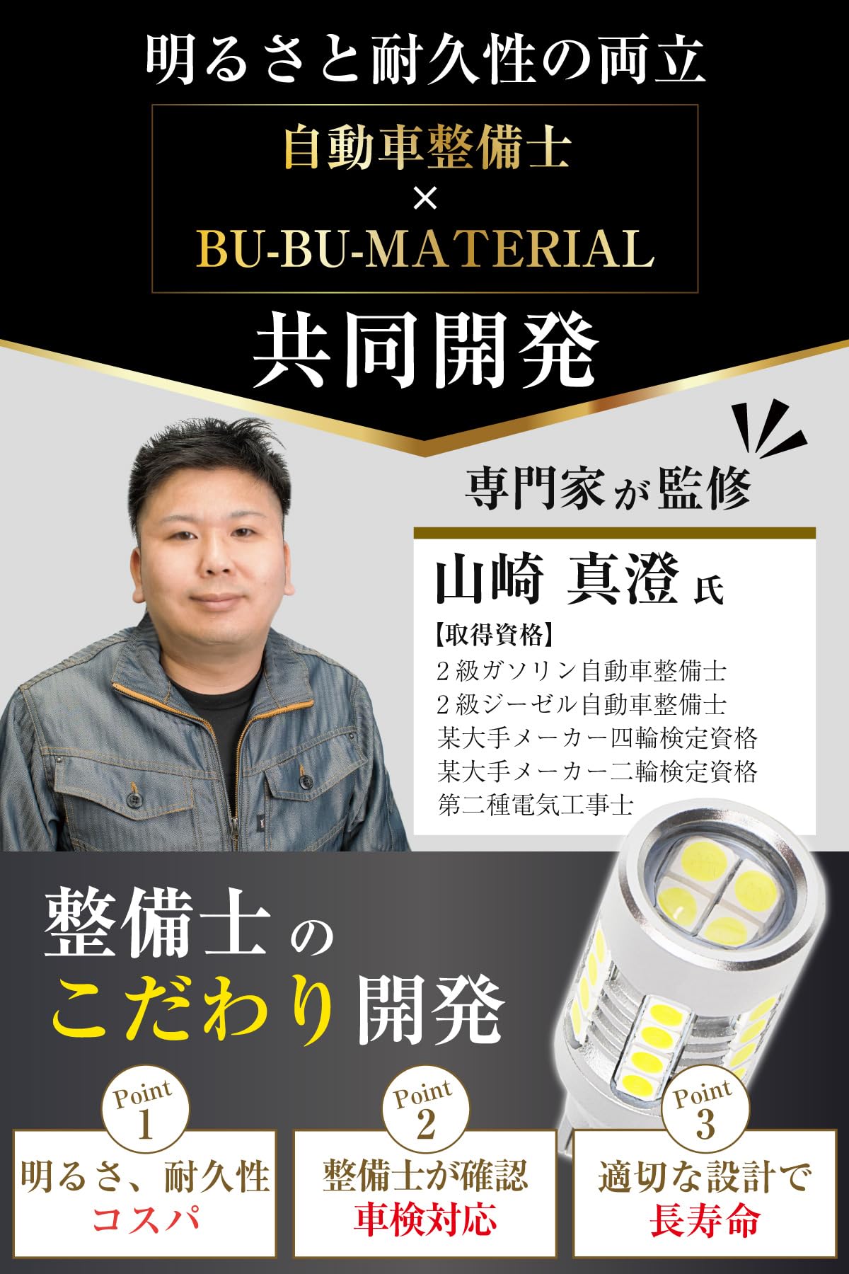 【自動車整備士の山崎氏が監修】●車検対応 その輝きは3600ルーメン 自動車整備士の山崎氏が車検対応であることを確認●安全設計 発熱抑制IC搭載でLED寿命UP 自動で熱と電流を制御します●レンズ搭載で照射距離UP●放熱に優れたアルミボディ設計