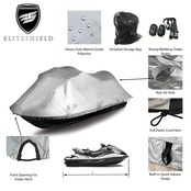 Eliteshield Coverであなたのパーソナルウォータークラフトジェットスキーを保護しましょう。 この丈夫なセミ カスタム フィット ジェットスキー カバーは、ジェットスキーを長年持ちこたえるダメージ要素から保護するものです。 雨、雪、土、埃、有害な紫外線から保護します。 カバーの下部の周囲の強力な伸縮性ショックコード ヘムがタイトなフィットを保証します。クイックリリースバックルとウェブストラップでセキュリティのタイトダウンとクイック調整が可能。 無料の収納袋も付いています。