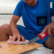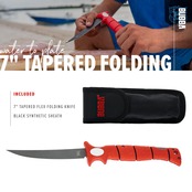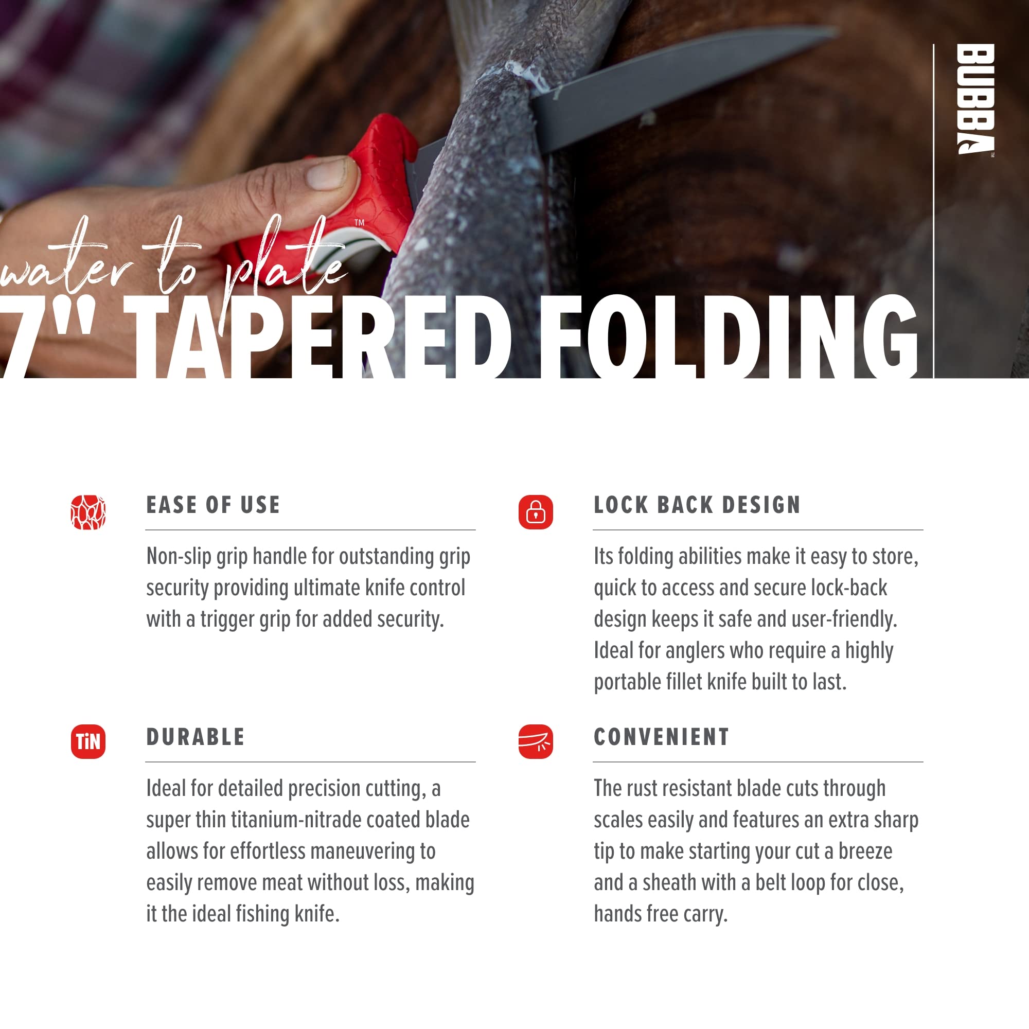 BUBBA 7インチ テーパード フレックス 折りたたみナイフ 滑り止めグリップハンドル付き オフセットフルタングステンレススチールブレード ランヤードホール 合成シース 釣り用