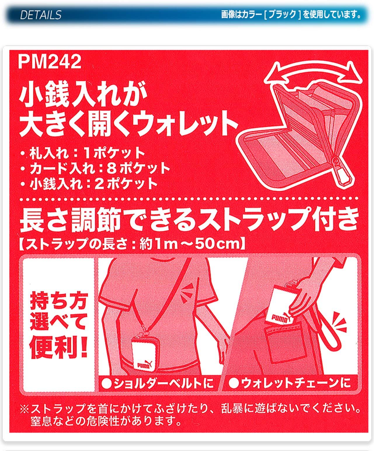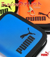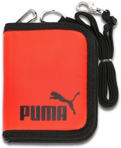 持ち歩きや紛失防止に役立つストラップ付のプーマの2つ折りウォレット。