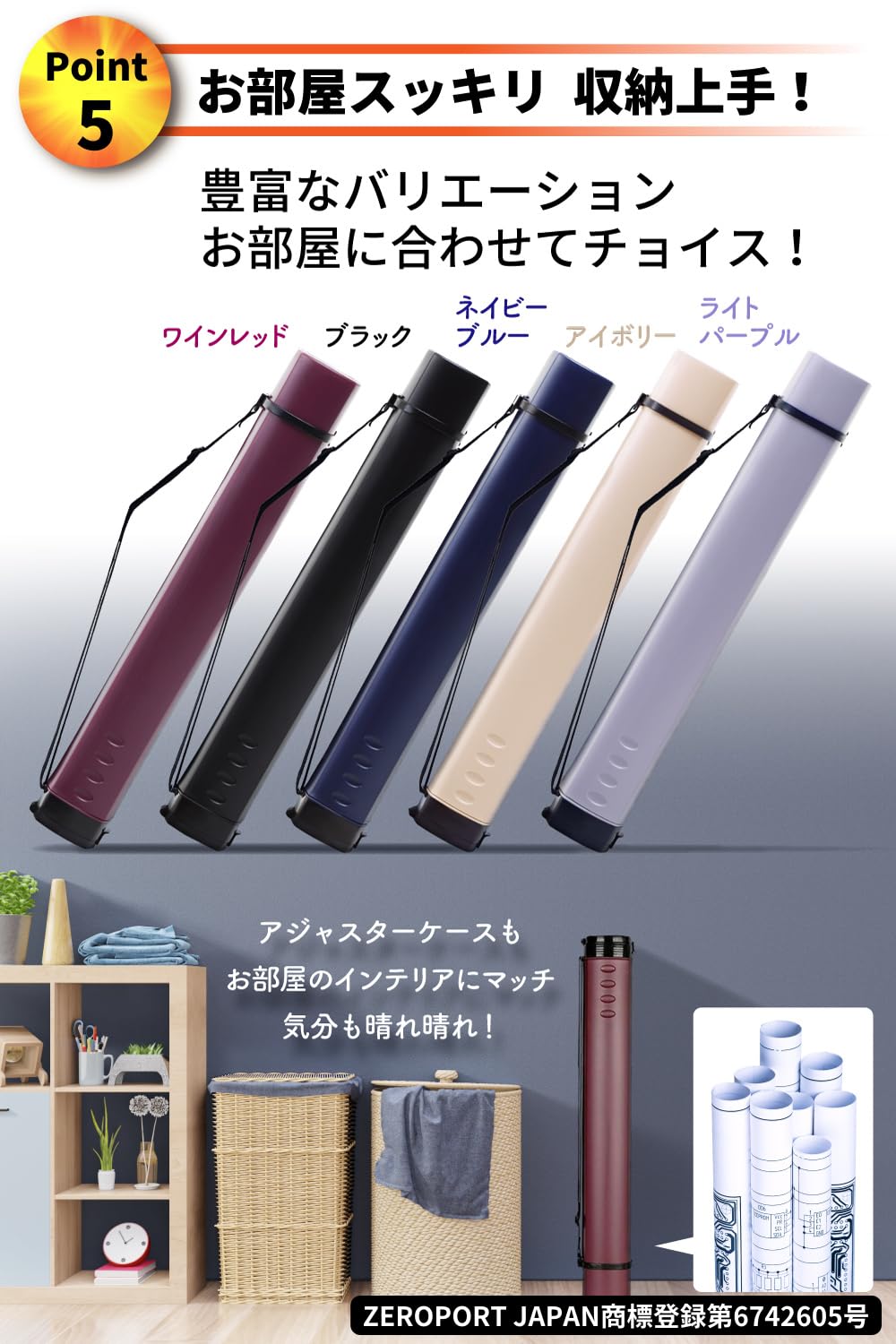 ZERO-PORT JAPAN ポスターケース 図面ケース アジャスターケース 防塵 防雨 製図 プレイマット ケース 筒 (角筒62cm~105cm(ネイビー))