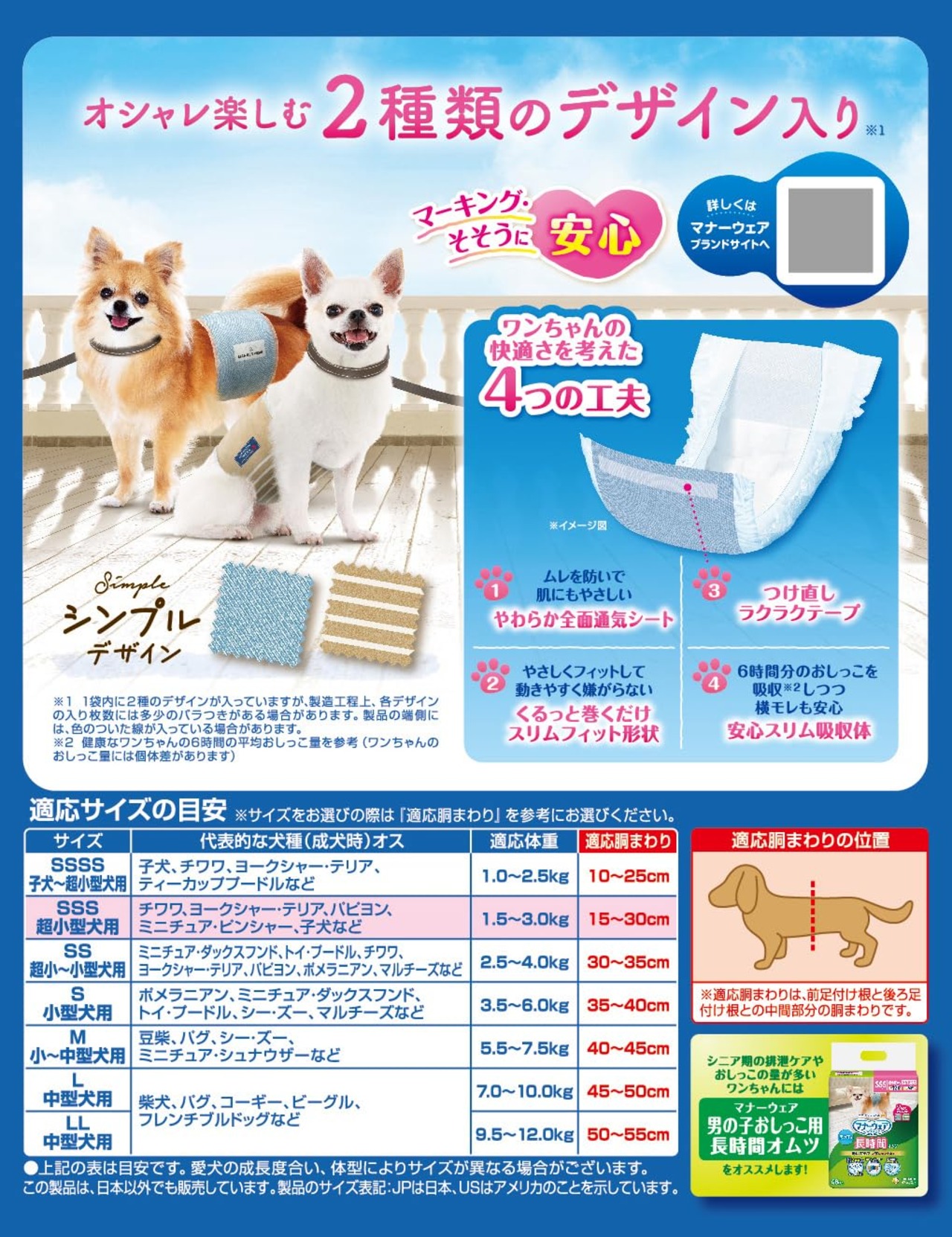 【4個セット】ユニ・チャーム マナーウェア 男の子用 SSSサイズ ジーンズ 52枚