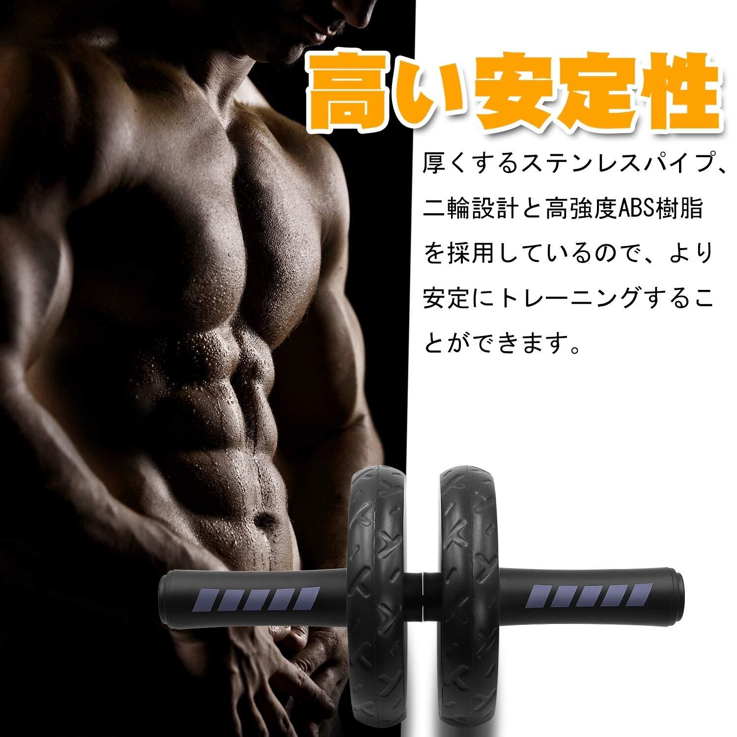 FEELCAT 腹筋ローラー 静音 アブローラー スリムトレーナー アブホイール 上半身筋トレ 膝保護マット付き 耐荷重200kg (A-腹筋ローラー単体)