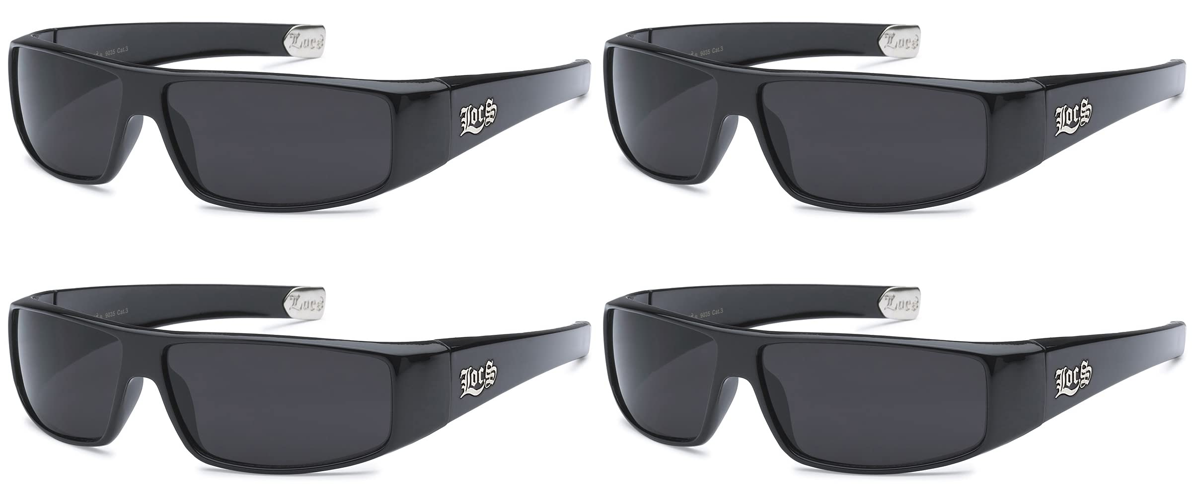 Locs 9035 ブラックサングラス ギャングスター ラッパー ローライダー チョロ メンズ シェード 4枚パック, ブラック
