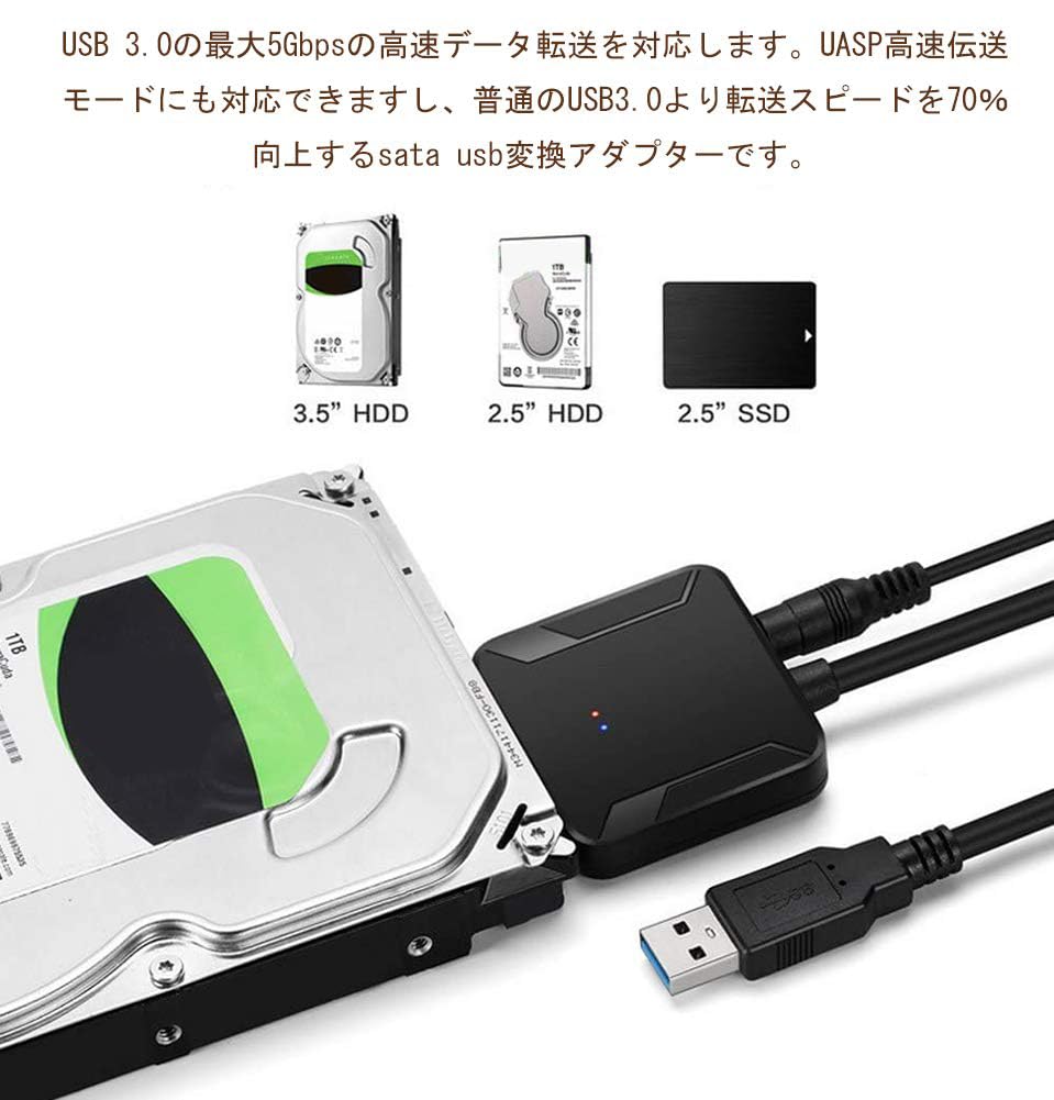 WOSOB SATA USB 変換ケーブル hdd 3.5 usb 2.5/3.5インチ 変換アダプター SSD HDD データ取り出しSATA3 USB 3.0 変換ケーブル UASP対応 高速転送 最大6TB