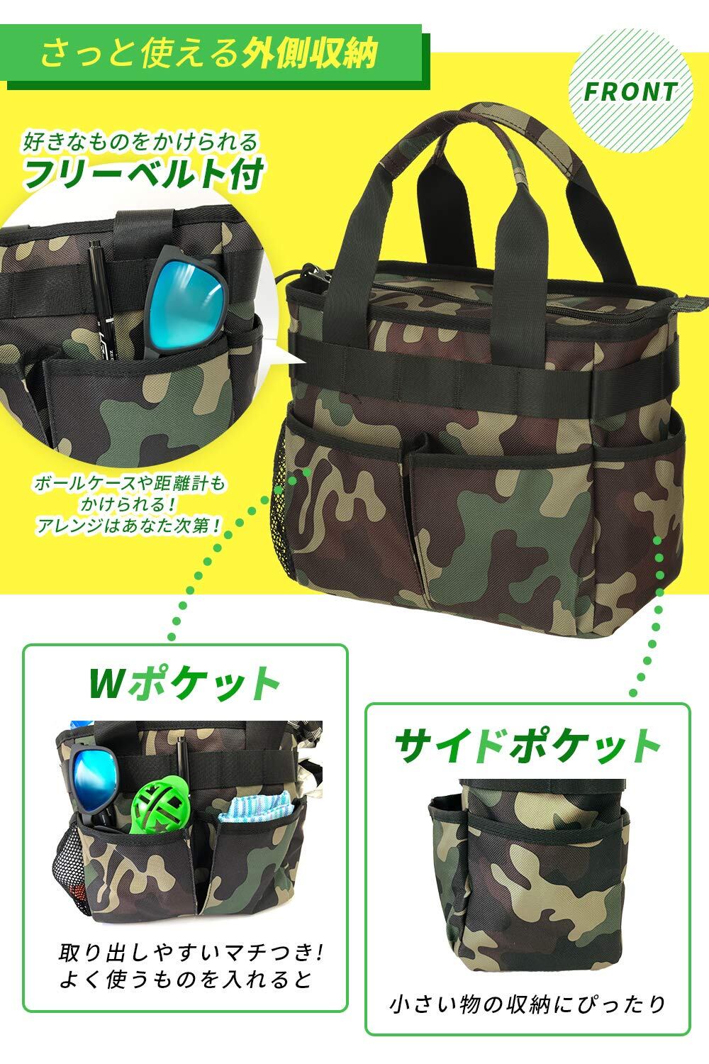 [EARTH LEAD] 公式 ラウンドバッグ ゴルフ 【7ポケット大容量収納 超軽量】 ラウンド トート バッグ ゴルフポーチ ゴルフバッグ メンズ レディース おしゃれ (迷彩グレー)