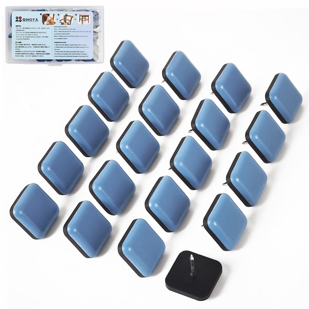 ギノヤ 家具スライダー, 20枚入り 25mm 方形 家具移動パッド ネイル付き 楽々移動 キズ防止・防音