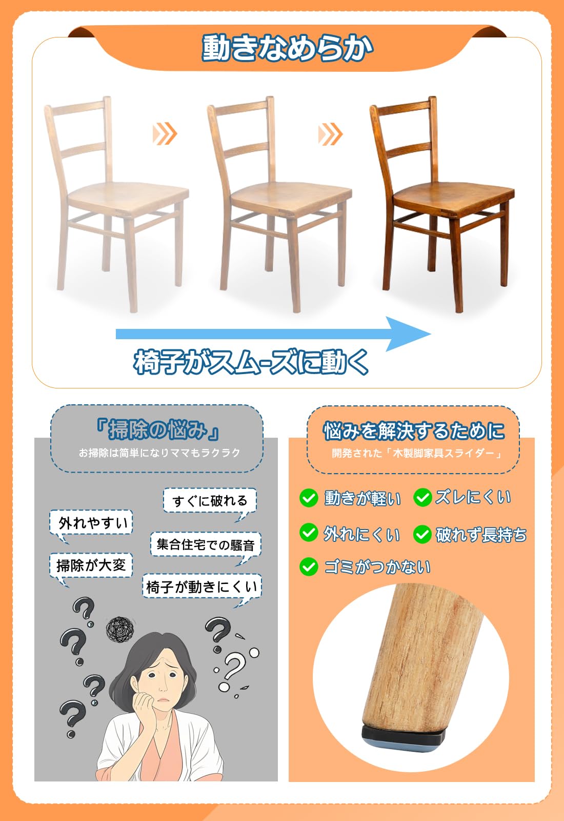 ★キズ防止・防音★重い椅子の足で家具移動パッドをつければ、床が傷つかずにキズ・ニック・へこみから保護できます。移動する際の騒音にも有効的に防ぎます。