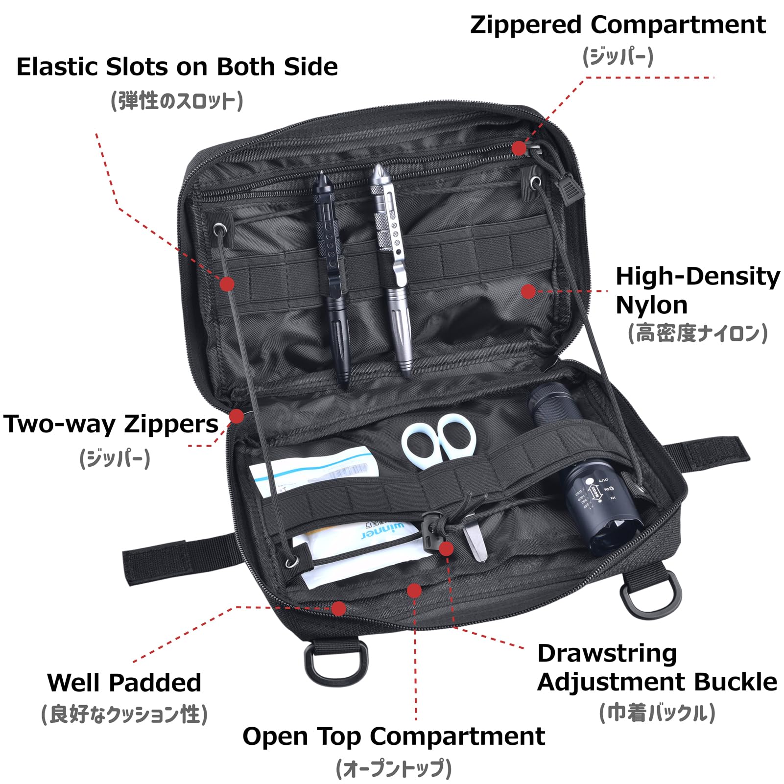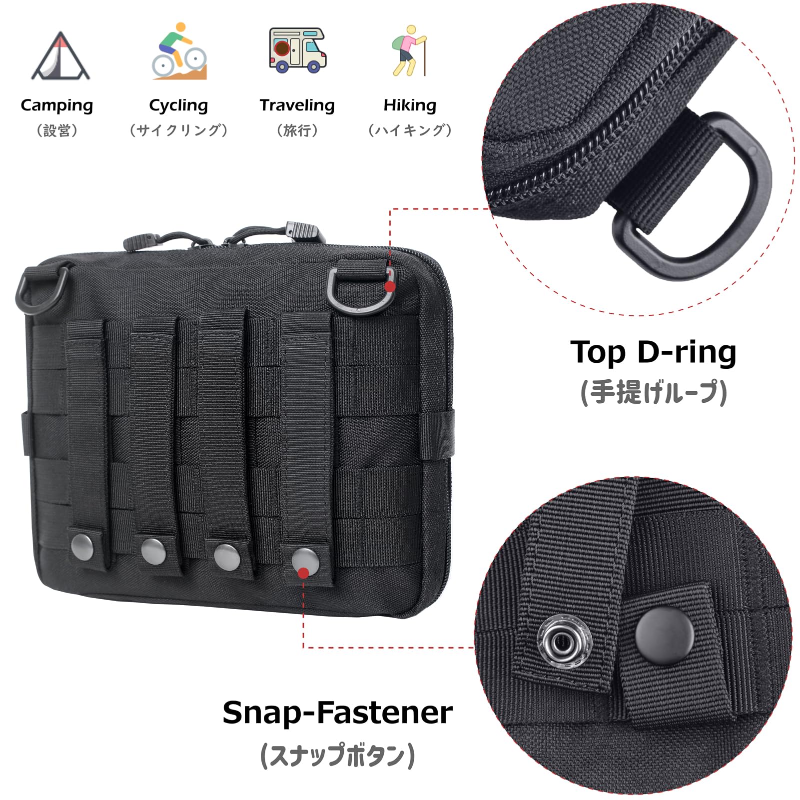 ✅【特徴】薬やバンドエイドなど各種の救急道具等を収納。MOLLEバッグパック・ベルト・ベストに装着可能