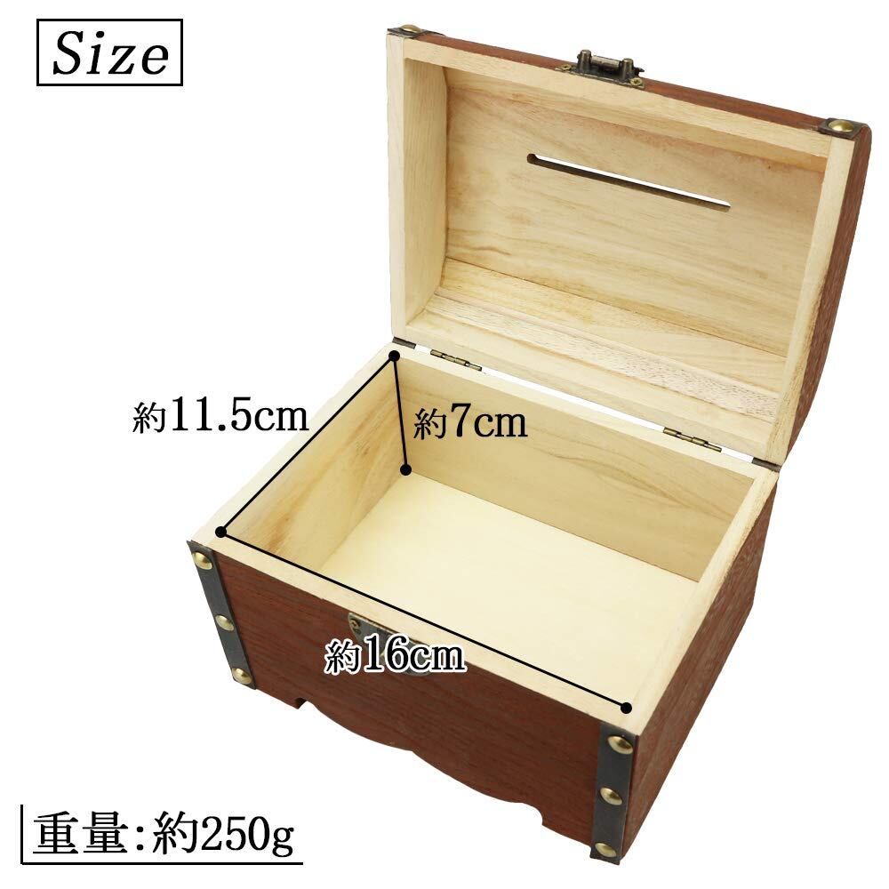 【セット内容】宝箱×1 南京錠×1 鍵×2 【サイズ】約12.5cm×17.5cm×13cm 投入口:約8.5cm 【カラー】ブラウン・ホワイト ※お好きなカラーをお選び頂けます。