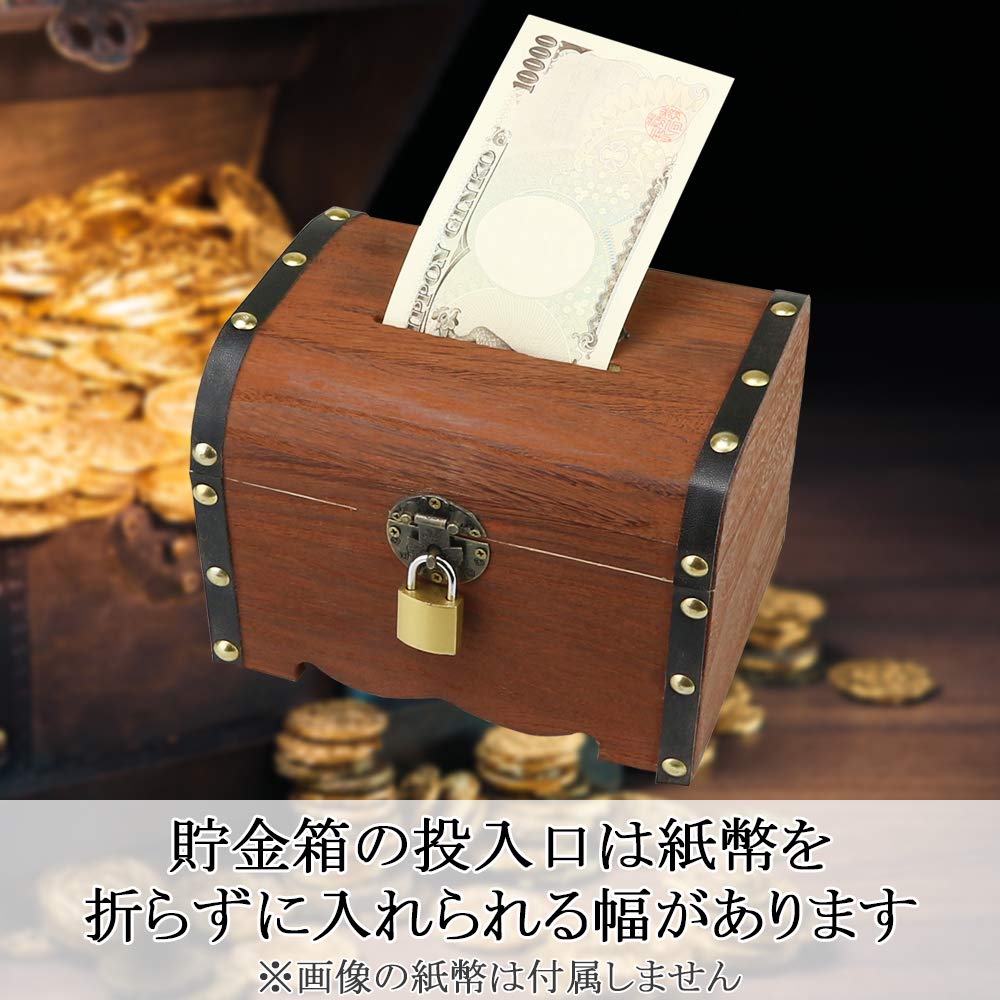 貯金箱の投入口には、お札を折らずに入れることができます。オシャレなデザインの宝箱はお部屋のインテリアや、お店などのディスプレイとしてもオススメです。