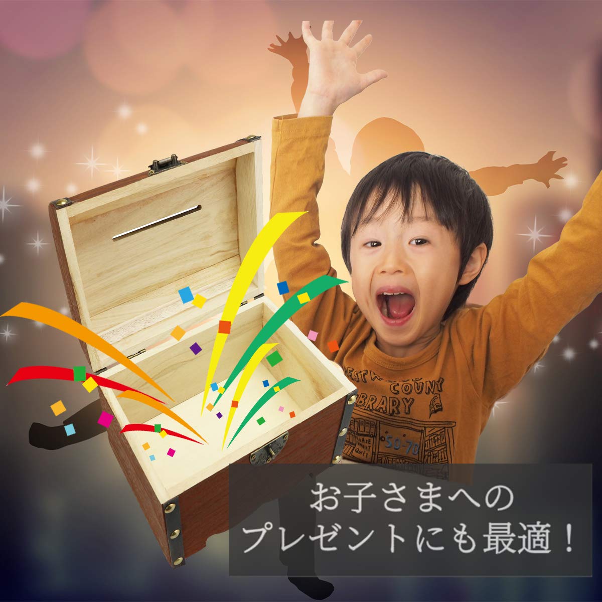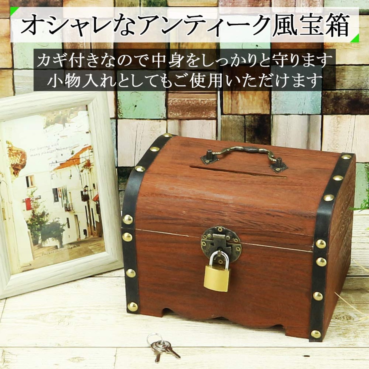 アンティーク風♪遊び心あふれる素敵な木製の宝箱型貯金箱です。