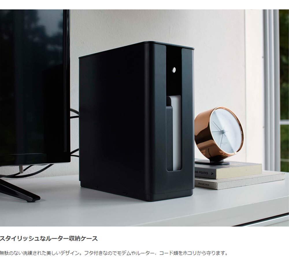山崎実業(Yamazaki) 重ねられるスリム蓋付きルーター収納ケース 【2個セット】 収納 モデム ルーターボックス ブラック 4914×2