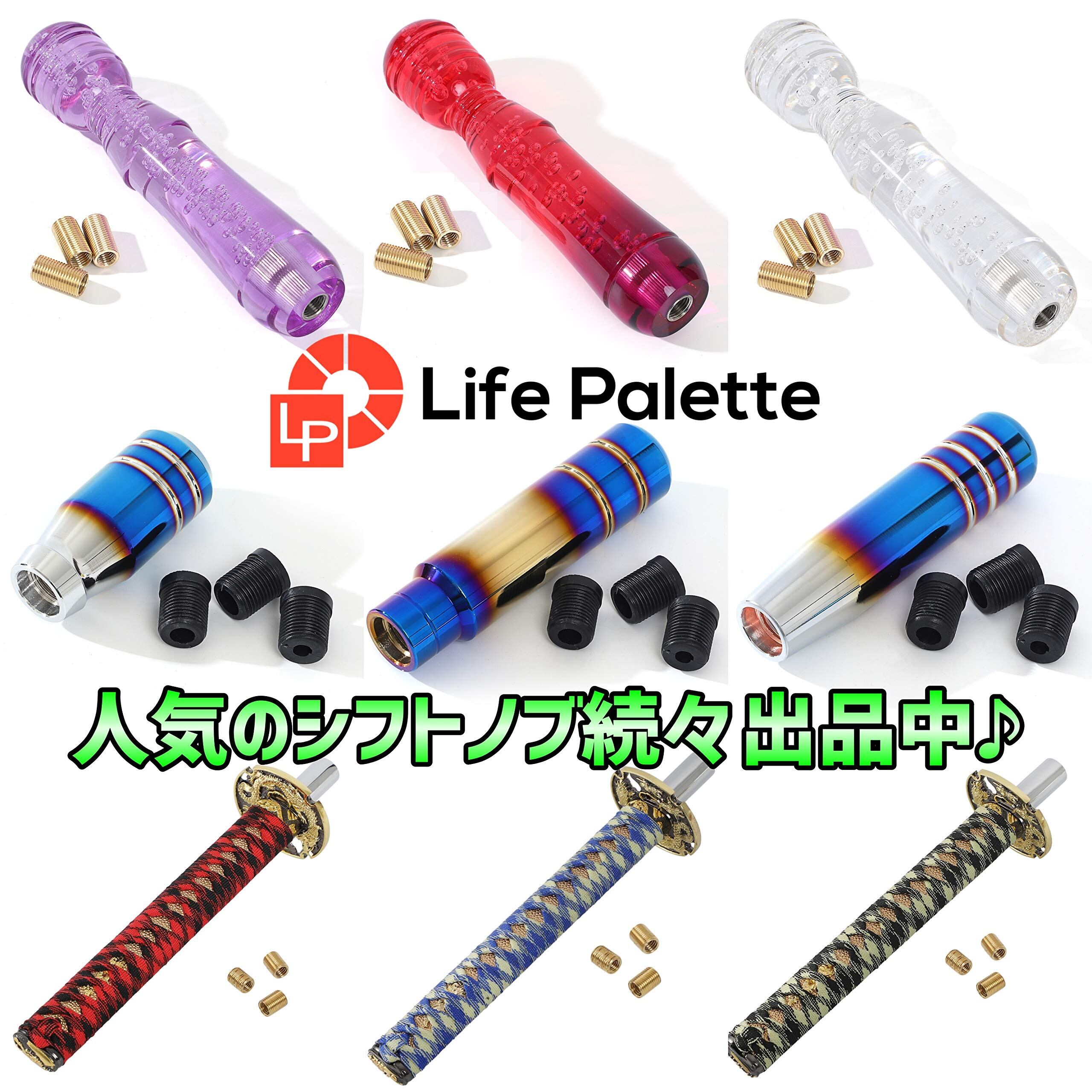 ライフパレット 汎用 クリスタルシフトノブ バブル 八角 400mm キラキラ透明感際立つ爽快な泡入り 3枚アダプター付き (ブルー)