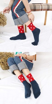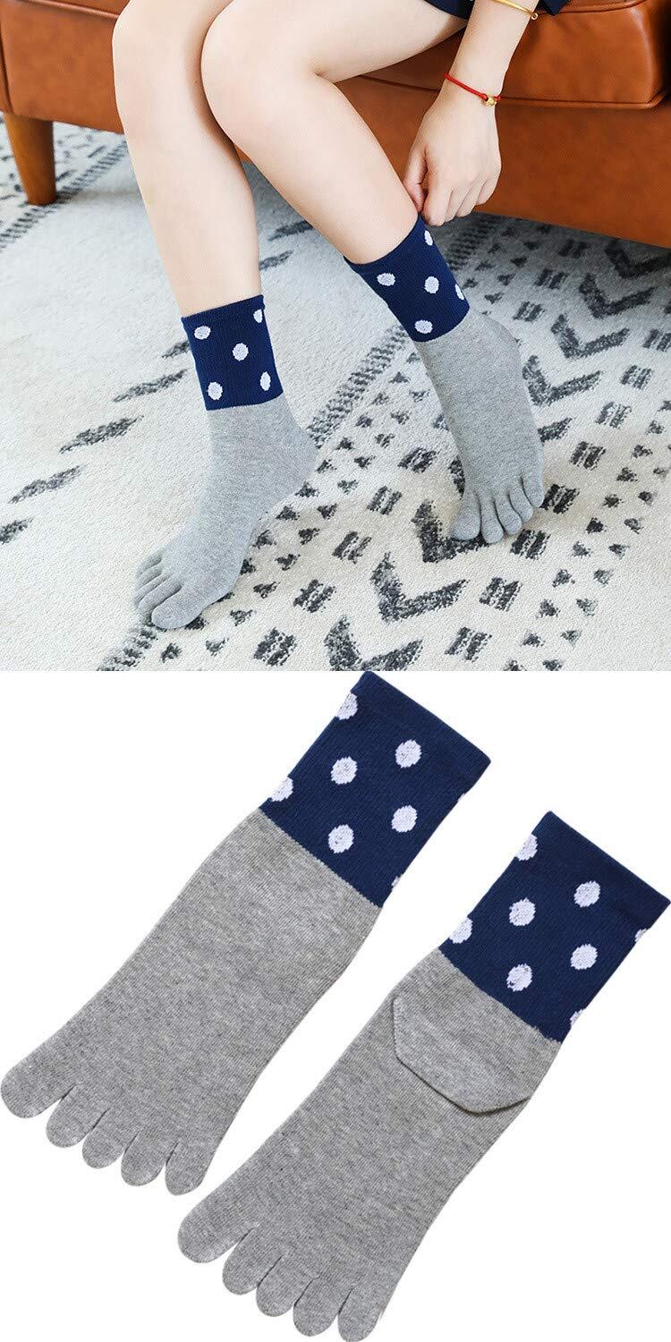 [ケヤカ] レディース 5本指ソックス 綿 5足セット 水玉模様 通勤 通学 スポーツ ソックス 5本指靴下 女性 五本指ソックス クルー丈 レディースソックス 通気 吸汗 速乾 防臭 蒸れない 可愛い おしゃれ