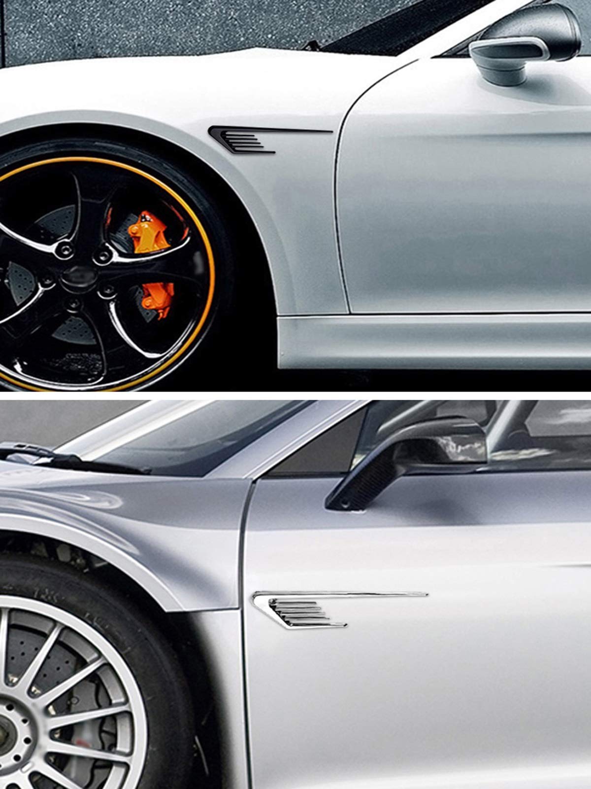 ダミーダクト アロイカーエアフローベント、車の外装フードサイドエアインテークフローベントシャークジョアーアウトレット装飾トリムステッカー (Color : Silver)