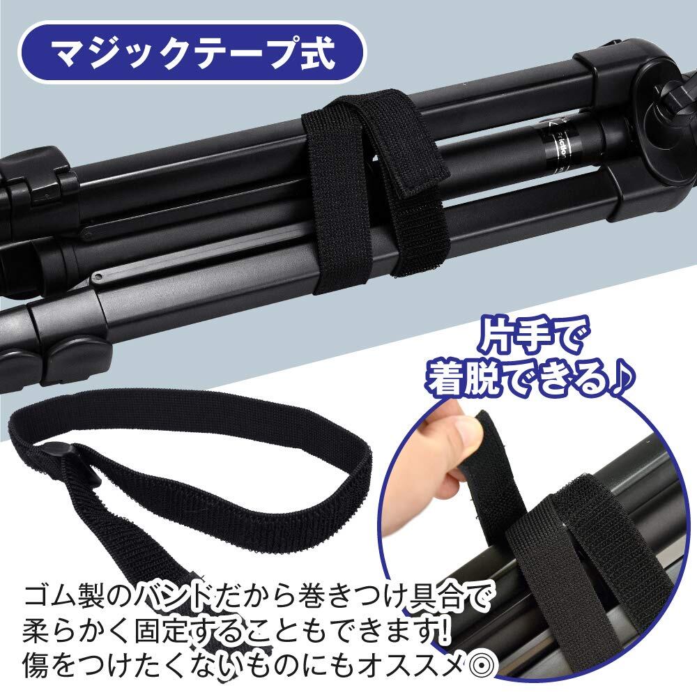 伸縮性に優れたゴム素材を採用し、巻きつけ具合でソフトにな固定ができるので、傷つけたくないものの固定にも適しています。