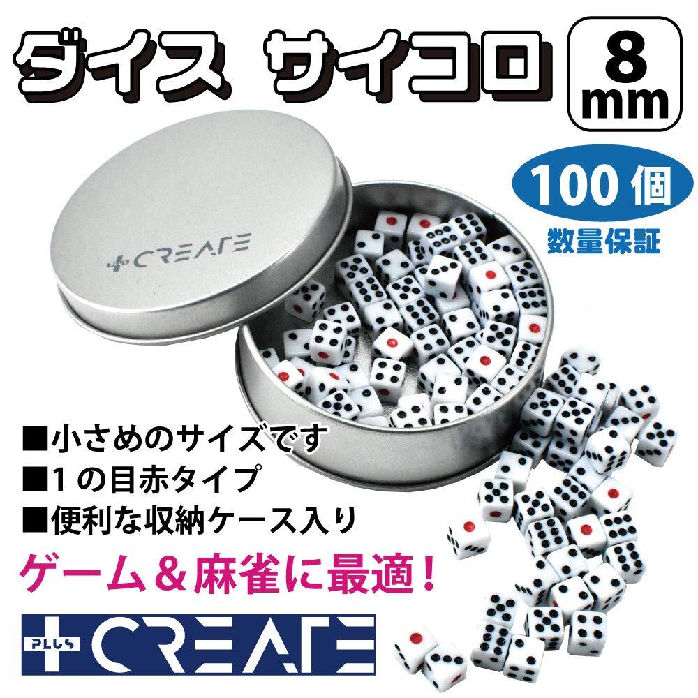 サイコロ 白 8mm 100個 セットケース入り 麻雀 ボードゲーム(数量保証付)一の目赤 小型