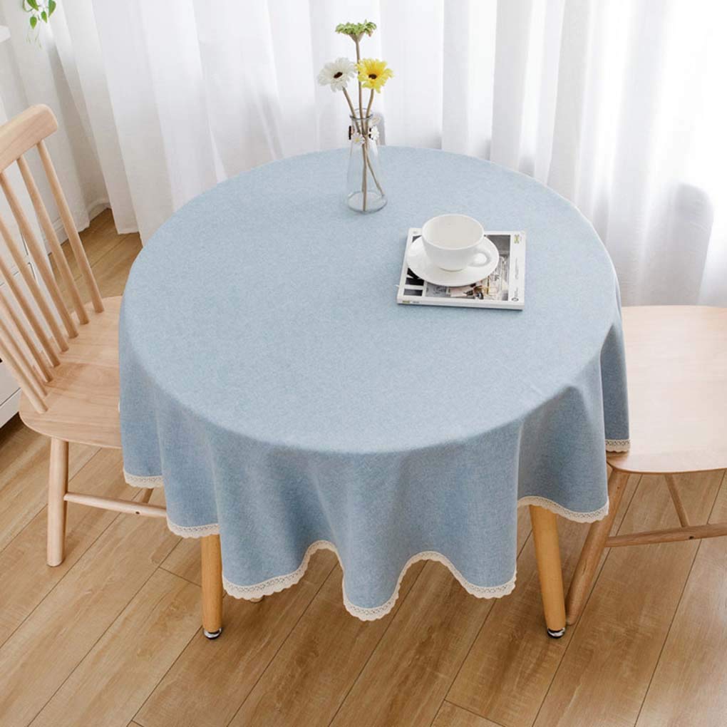 円形 テーブルクロス レース縁取り ブラウン コットンリネン テーブルマット マルチクロス 丸型 140㎝ 布 デスクマット 厚手 汚れ防止 耐熱 耐久性 柔らかい 食卓カバー 家庭用 店舗用
