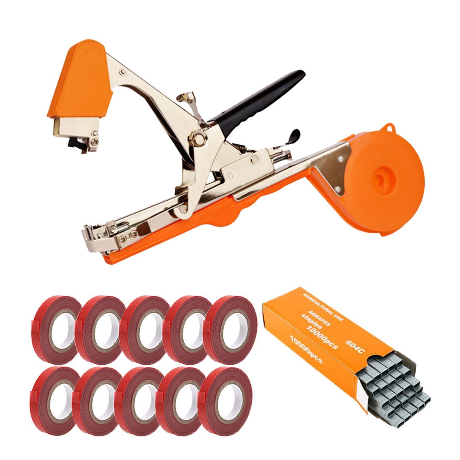 完全なアクセサリー:植物の結びつきツールには、10回のロールのテープとステープルの箱が付いており、行く準備ができています。