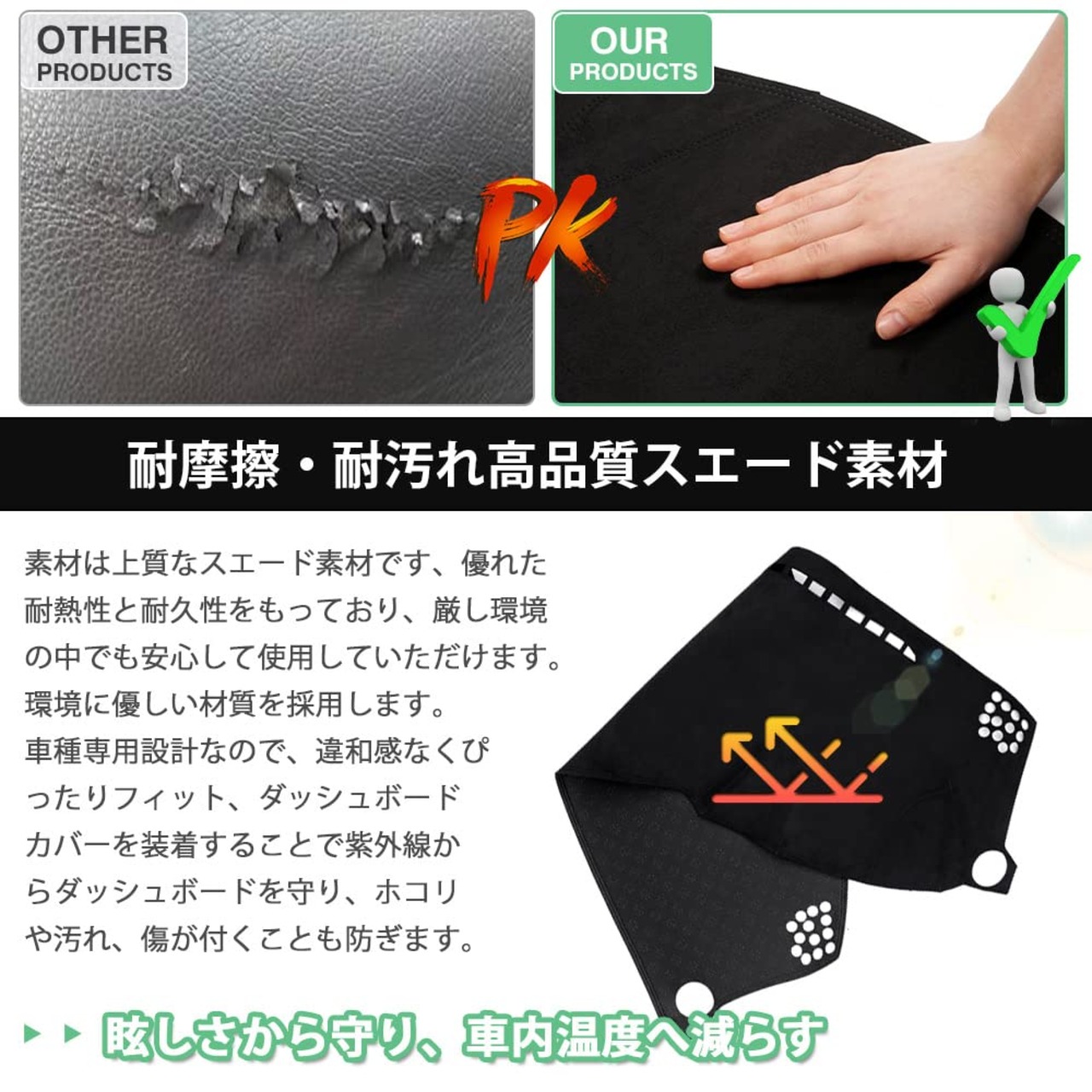 3.【高品質ポリエステル素材(スエード)】:素材は上質なスエード素材です、優れた耐熱性と耐久性をもっており、厳し環境の中でも安心して使用していただけます。環境に優しい材質を採用します。車種専用設計なので、違和感なくぴったりフィット、ダッシュボードカバーを装着することで紫外線からダッシュボードを守り、ホコリや汚れ、傷が付くことも防ぎます。
