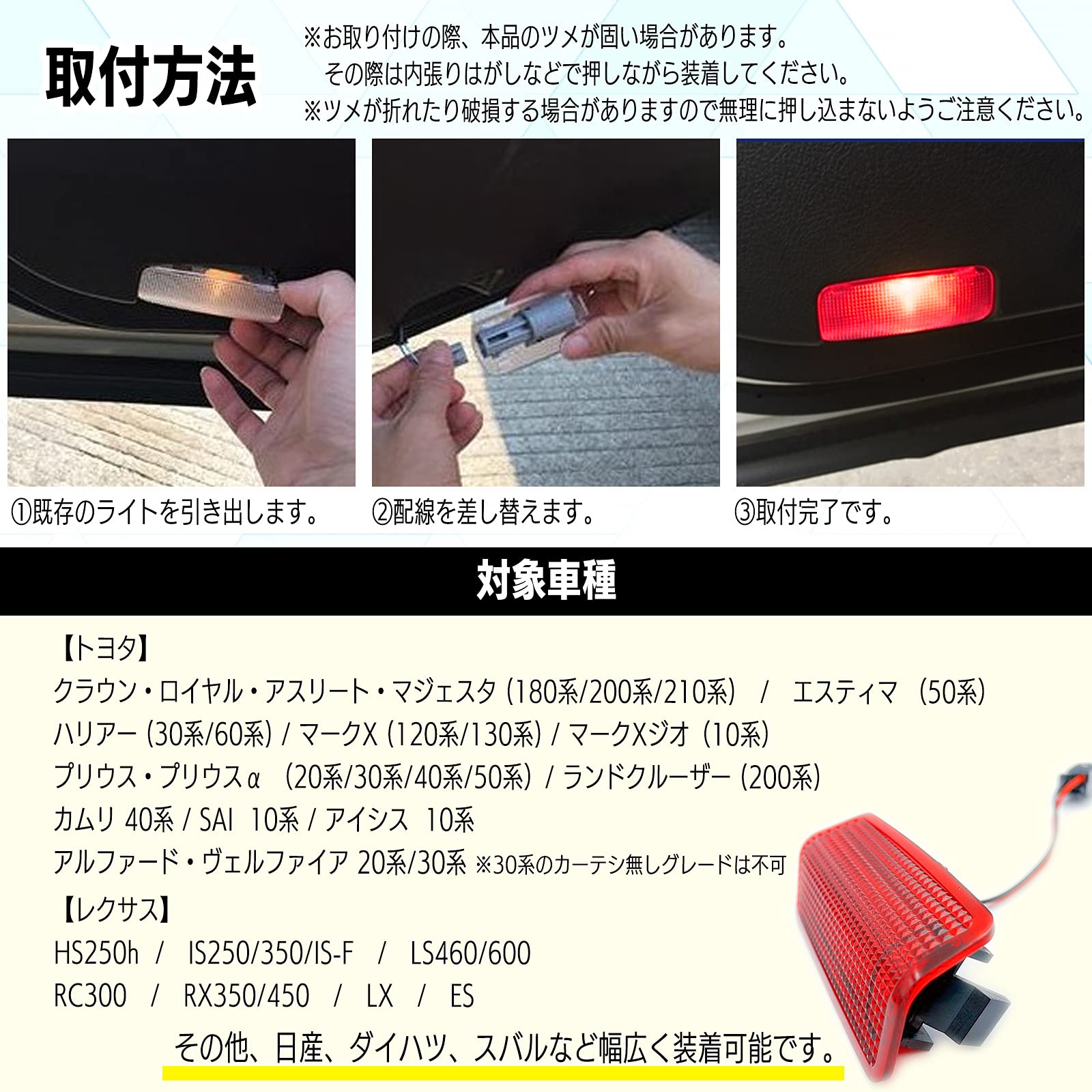 Meliore カーテシ ランプ 北米 仕様 LED 赤 レッド レンズ 純正交換 ウェルカム ライト ドア 汎用 US ユーロ カプラー オン プリウス クラウン ハリアー アルファード 等 2個 セット