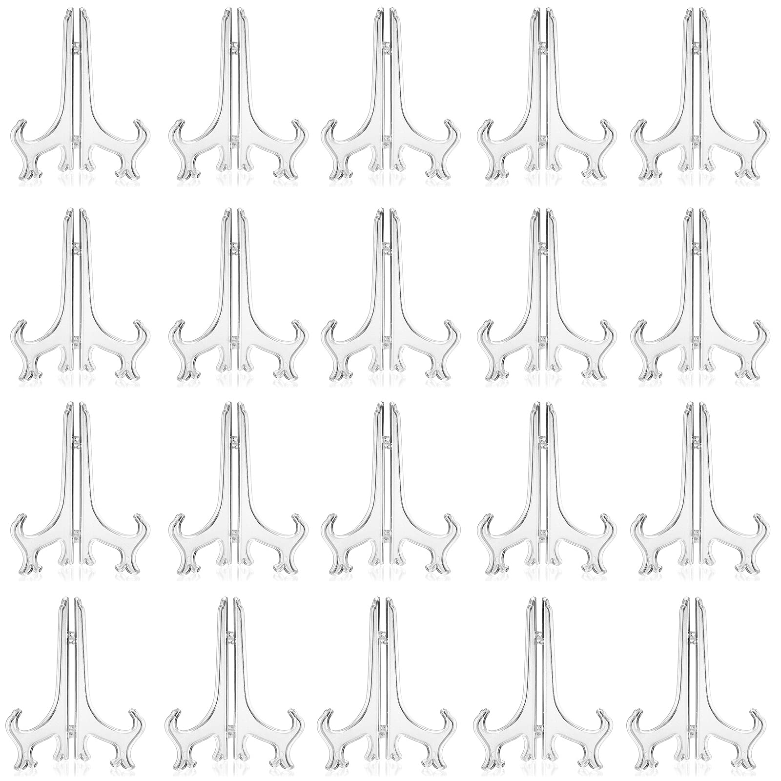 Punhung クリアプラスチックイーゼルプレートスタンドホルダー ディスプレイピクチャーイーゼル 写真、皿、アートピース、証明書、結婚式、パーティー、自宅、テーブルデコレーション(クリア、4インチ) 20個パック