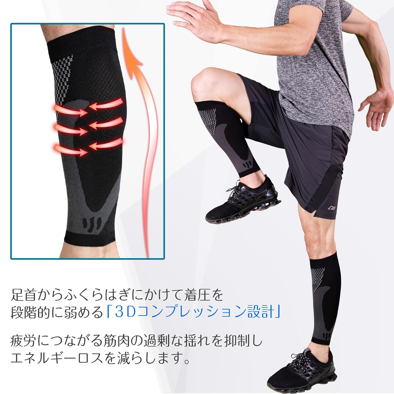 【ふくらはぎの筋肉の揺れを抑制する着圧設計】 ・3Dコンプレッション機能 ・血流サポート機能 ・体温コントロール機能 着圧感と装着感を重視したバランスの良いスポーツサポーターです。