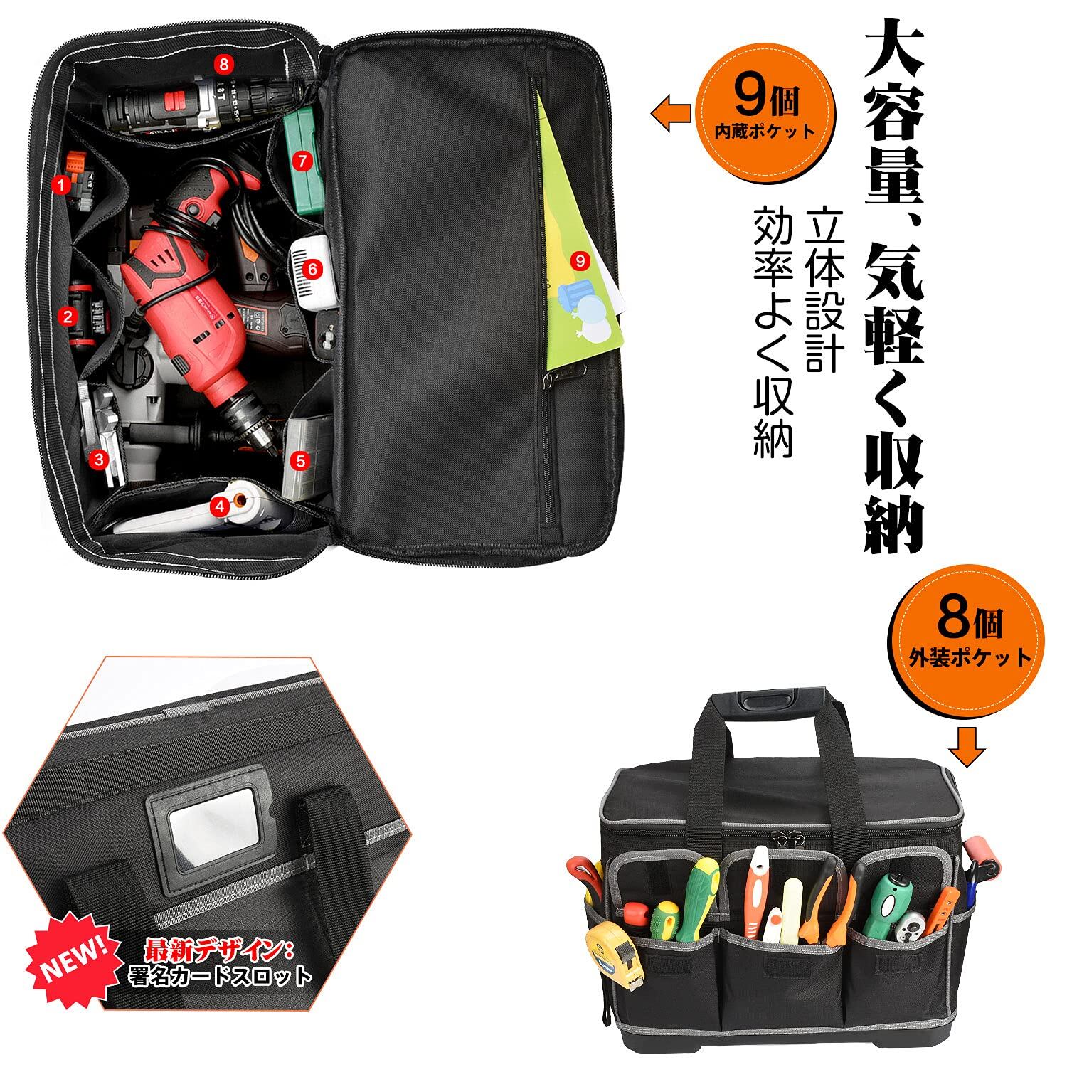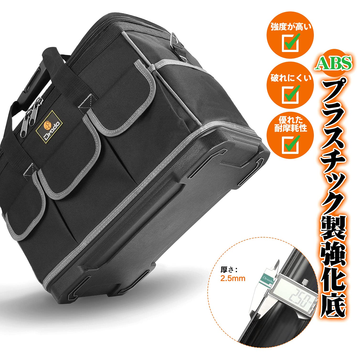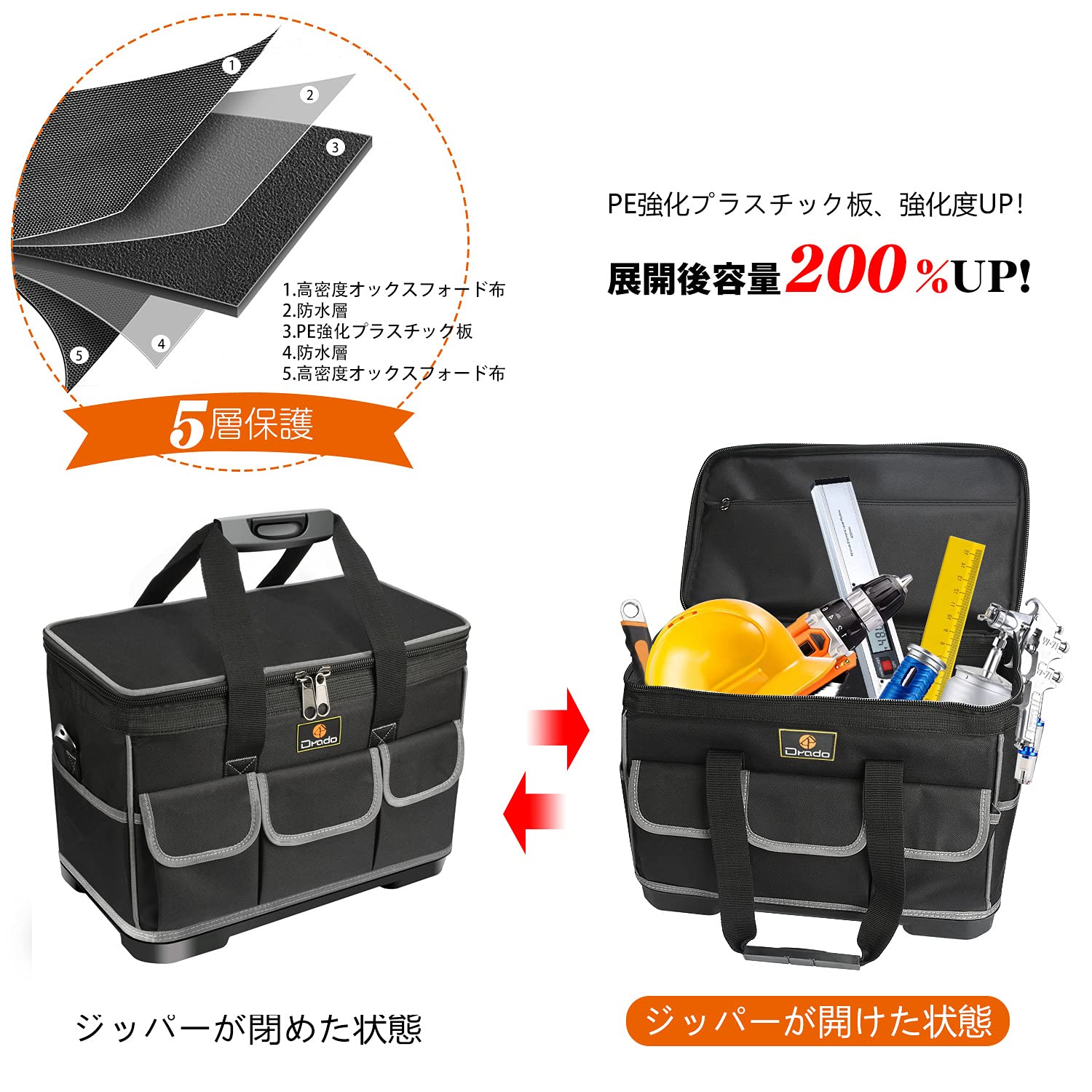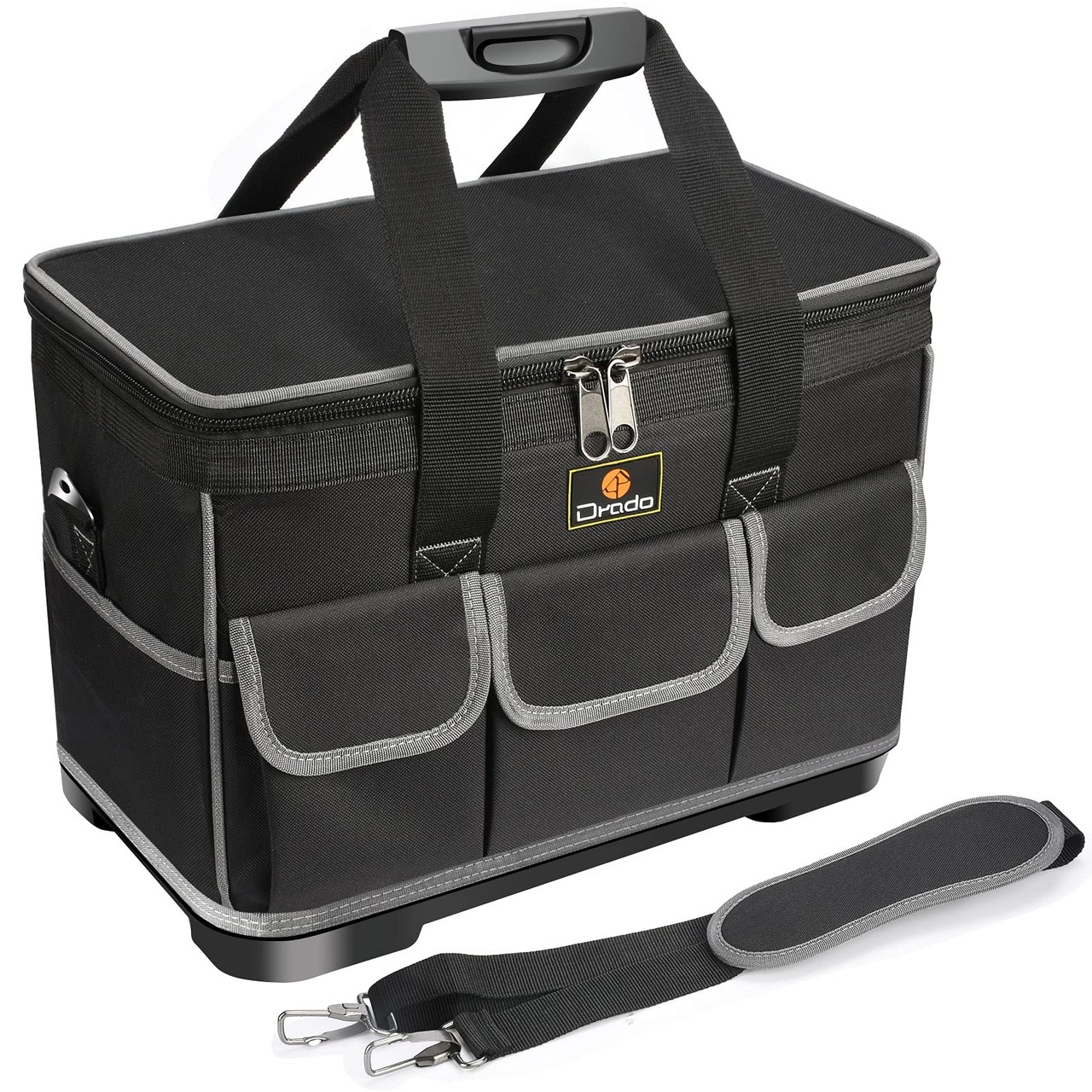 Drado ツールバッグ 工具バッグ 工具袋 道具袋 工具差し入れ 工具収納 大口収納 肩掛けベルト付き ツール収納バッグ 1680Dオックスフォード 特化プラスチック底部 撥水処理 40㎝×23㎝×28㎝(ブラック)