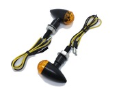 弾丸を模した流線形のスタイリッシュなデザイン。軽量で強度のあるアルミ製のボディーにマットブラックの塗装やメッキを施し高級感のある仕上がり。レンズ表面には凹凸のないスッキリとしたデザインでアメリカンやストリートファイターなど様々な車種に合わせやすいウィンカーです。