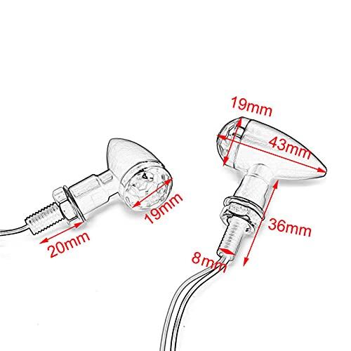 取付けネジ径M8 穴径8ミリ 汎用タイプのマイクロウインカー2個セットです。 一般的なミニウインカーの取付けネジ径10ミリよりも小さく、非常にコンパクトでウインカーを目立たせたくない場合やスペースに余裕がない場合などにカスタムの幅が広がります! 弾丸を模した流線形のスタイリッシュなデザイン。 軽量で強度のあるアルミ製のボディーにマットブラックの塗装やメッキを施し高級感のある仕上がり。 レンズ表面には凹凸のないスッキリとしたデザインでアメリカンやストリートファイターなど様々な車種に合わせやすいウィンカーです。 【超小型デザイン】 全長43mm、レンズ面の直径か20mmと非常にコンパクトで、純正ウインカーなどに比べスッキリとまとまりのある見た目になっています。 コンパクトながらレンズの内側にはLEDの光を効率よく拡散するカットが入っており、明るさや視認性も十分。 レンズ面は2重構造で、配線の根元にはしっかりとシールが施されているため防水性も問題ありません。 【商品詳細】 【適合】12V車専用 消費電力:1W 【サイズ】全長:43mm 直径:20mm 取り付けネジ径:M8 配線長:340mm 【配線】2本:黒色→マイナス 黄色→プラス 取扱説明書・箱・保証書は付属しませんのでご了承ください。 【ウインカーは保安部品です】 EU規格適合の[Eマーク]と協定規格50号認定の[50R]の刻印があり保安基準適合の【車検対応品】となっております。 LEDウインカーのため、ハロゲン球から変更の際にはハイフラ防止の抵抗器やICウインカーリレーをお取り付け下さい。 ※車検適合品とはなっていますが、取付けの際には保安基準をご確認ください。 また、車検の際に保安基準適合品の根拠を求められる場合が御座います。