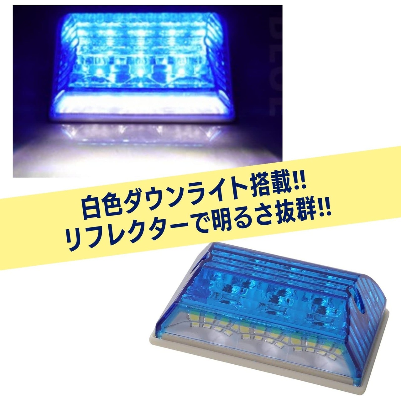 SMD12LEDを搭載したダウンライトは、夜間の車幅確認が簡単に可能です。本体内部に施したリフレクターで適度に光を拡散します。回路が独立してるため、ダウンライトのみ照らすことやカラーマーカーのみでダウンライト未点灯状態でも利用可能です。