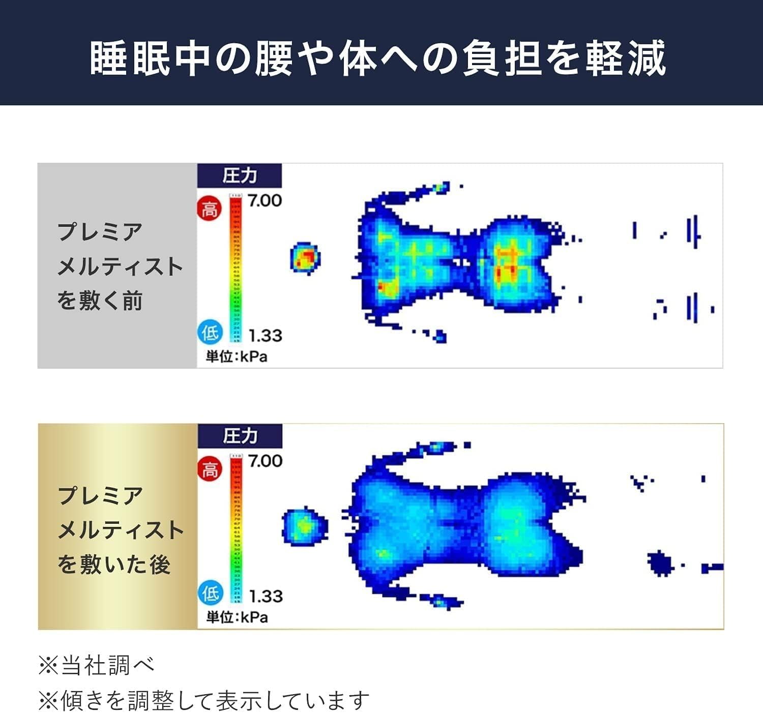 ・プレミアケアシリーズ商品よりも体にかかる圧力を分散、睡眠中の腰への負担をさらに軽減※仰向け/スプリングマットレスの上に敷いた場合