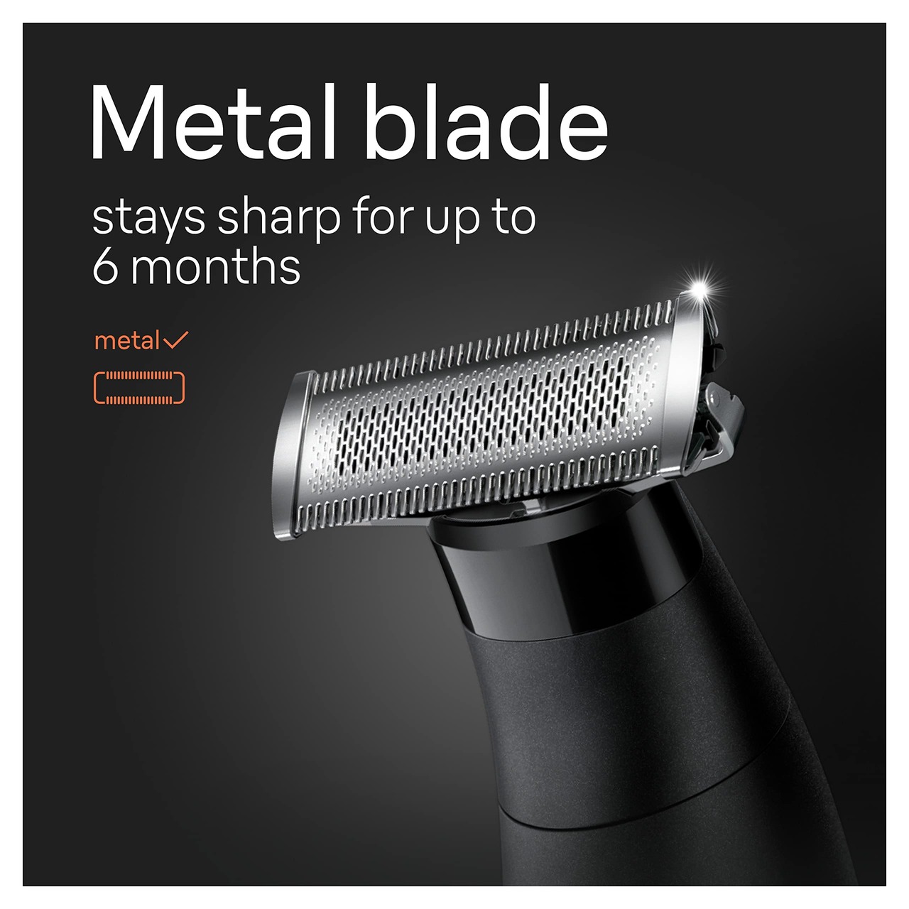 長持ちするように作られたこの男性用ひげ剃り器とボディトリマーは、最長6ヶ月間鋭いままのステンレススチールの刃を使用しています*