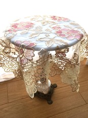 北欧風の光沢があり美しく上品なレースのテーブルクロスです。