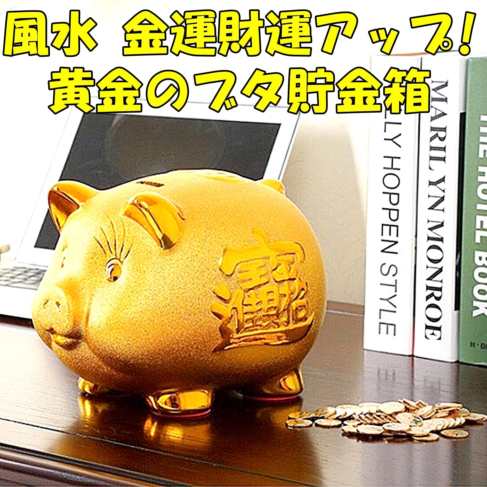 ✅金運の象徴であるゴールドの貯金箱、ピギーバンクです。風水グッズとして家に飾ると縁起が良くなるだけでなく、金運アップも期待できます。