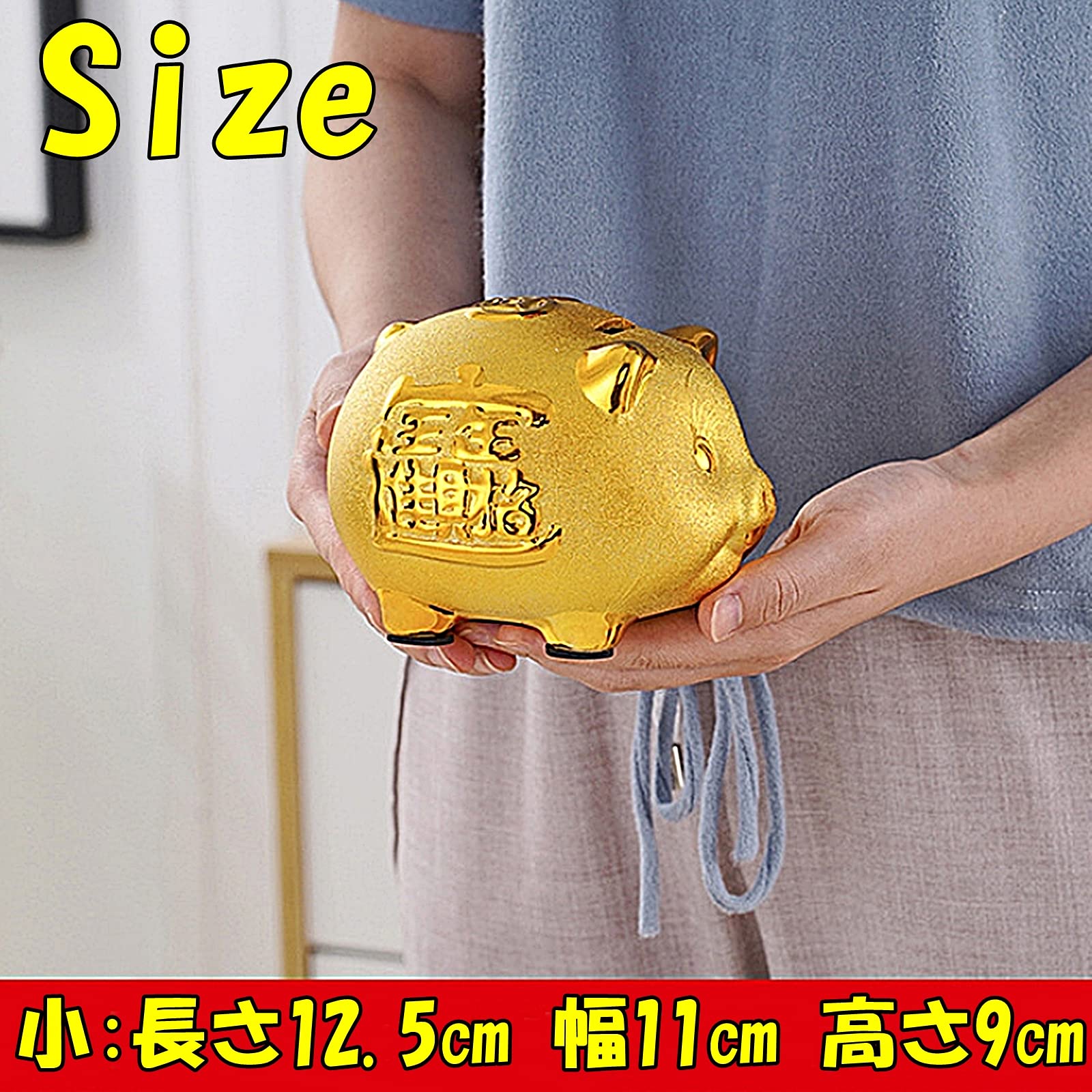 ✅金運の象徴であるゴールドの貯金箱、ピギーバンクです。風水グッズとして家に飾ると縁起が良くなるだけでなく、金運アップも期待できます。 ✅中国伝統文化の歴史上、黄金豚は金運と福の象徴であり、風水や金運アップの縁起物として選ばれる逸品です。 ✅背部には硬貨の投入口があり、底にある蓋から硬貨を取り出すことが可能です。紙幣も折り畳んで投入できます。 ✅ブタは世界中で縁起物とされています。それ以外にも大願成就、千客万来、厄除け、運気上昇など様々なご利益があるとされています。 ✅【素材】セラミック 【色】金 ゴールド【サイズ】小:長さ12.5㎝ 幅11㎝ 高さ9㎝