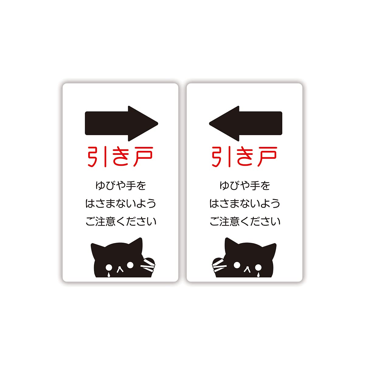 Biijo 引き戸 スライドドア 案内 ステッカー 2枚セット 防水・耐熱 シール サイズ:タテ115mm×ヨコ66mm (白(猫))