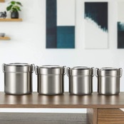 素材・材質:本体・フタ=ステンレス(アクリル樹脂塗装) 止め具=ステンレス 中容器・中フタ=ポリプロピレン パッキン=シリコーンゴム 底板=エラストマー