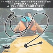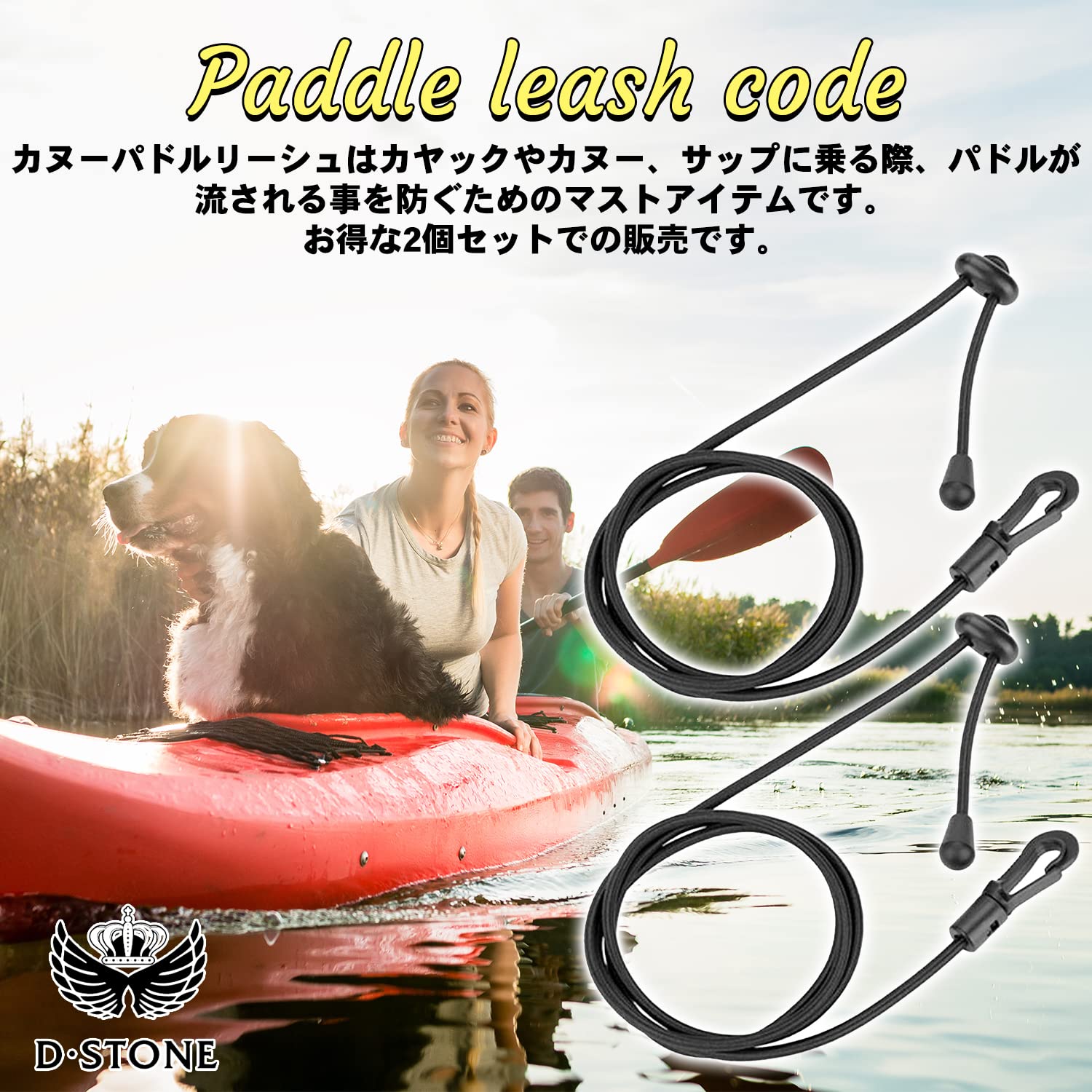 D・STONE カヌーパドルリーシュ パドル リーシュ コード カヤック カヌー 用 安全 ロッド 固定 調整 可能 2個 セット<br><br>カヌーパドルリーシュはカヤックやカヌー、サップに乗る際、パドルが流される事を防ぐためのマストアイテムです。お得な2個セットでの販売です。<br><br>片側はループフック、反対側にはカラビナがついていてカヌーやカヤック、カヤックフィッシング用のロッドなどに簡単にパドルを固定できます。<br><br>コードの長さは120cm、軽量で持ち運びにもかさばらず便利、耐久性に優れたリーシュです。ループフックで簡単に長さの調整が可能です。<br><br>カヤックバスフィッシングやサーフィンのサーフボードにもおすすめのパドルリーシュです。<br><br>【サイズ】長さ:120cm ロープ径:4mm 重さ:19g ※モニターの環境により、色の見え方に若干差が生じる場合がございます。<br><br>