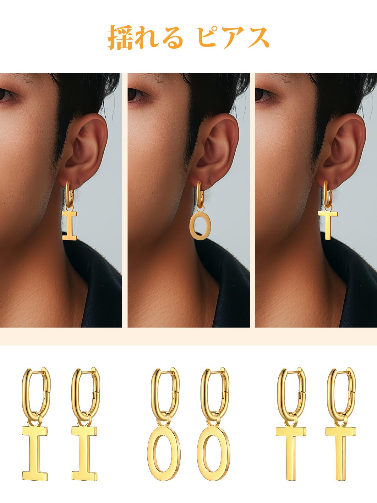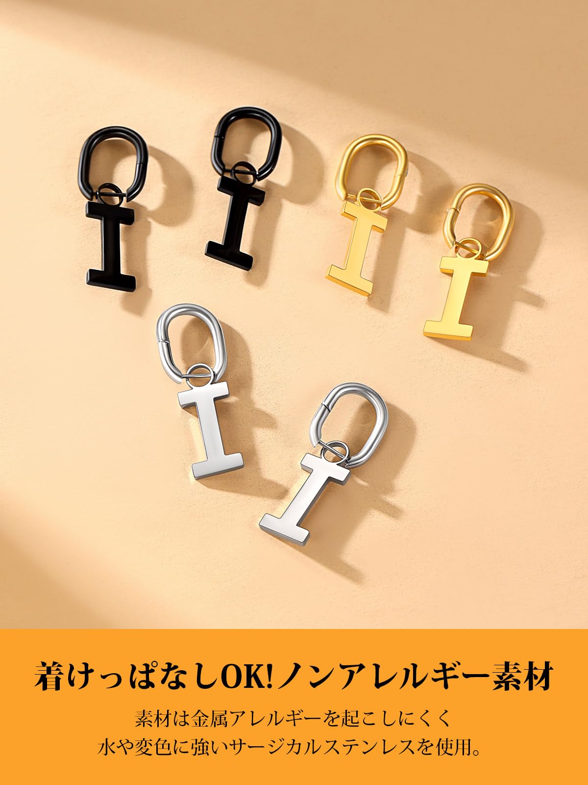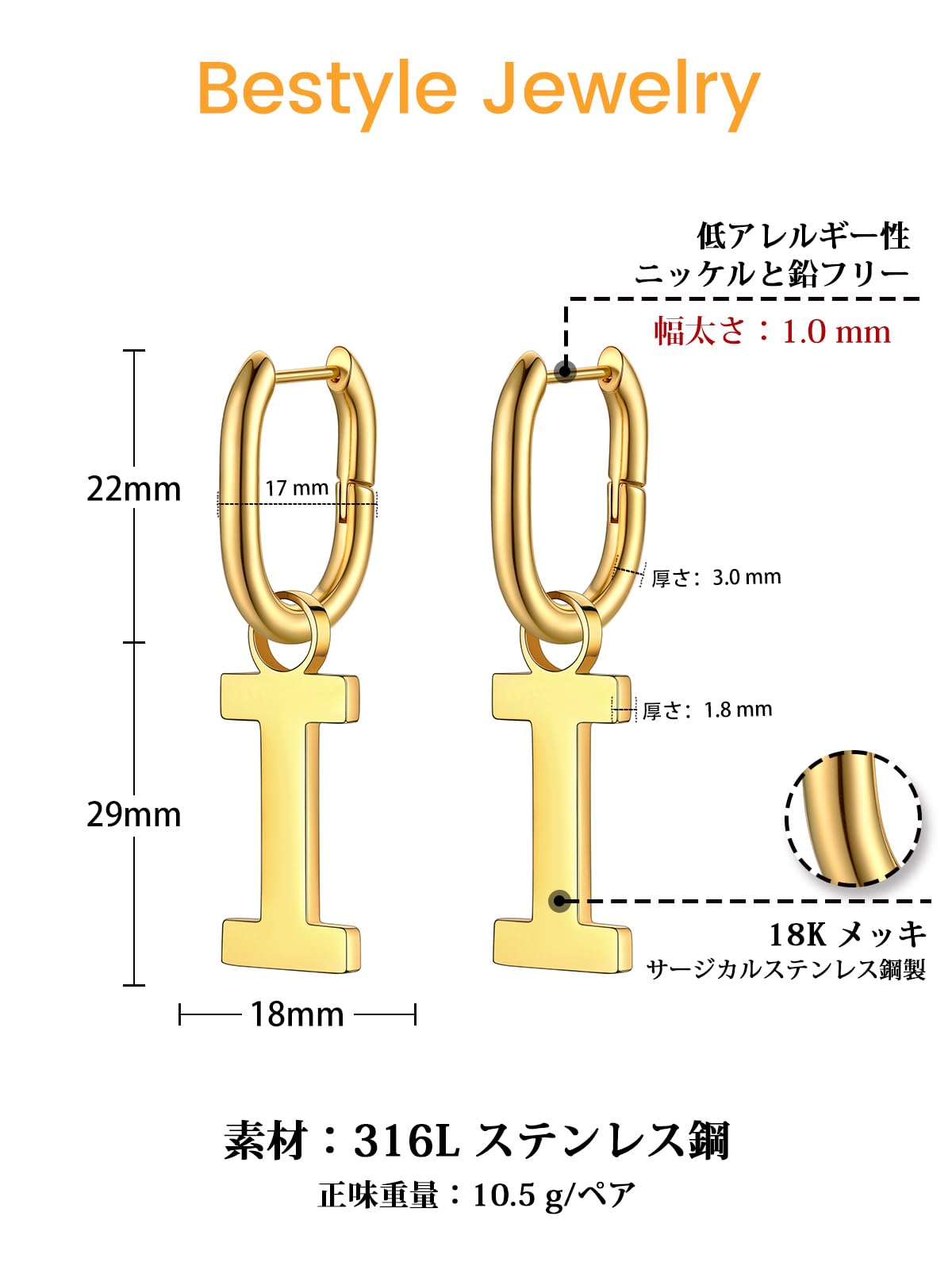 Bestyle イニシャルピアス メンズ レディース リンク ピアス シンプル 人気 アルファベット 字母 男女兼用(I,ゴールド)
