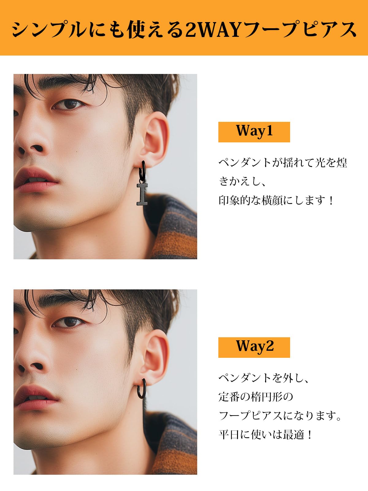 【男女兼用のデザイン】イニシャルピアスです。シンプルで洗練されたデザインで、日常デート、パーティーなど、色々なファッショに合わせることができ、男性にも女性にも普段のデイリーコーデにお使い頂けます。3色・26字母からお選びいただけますので、様々なシーンで使い分けることもできます。