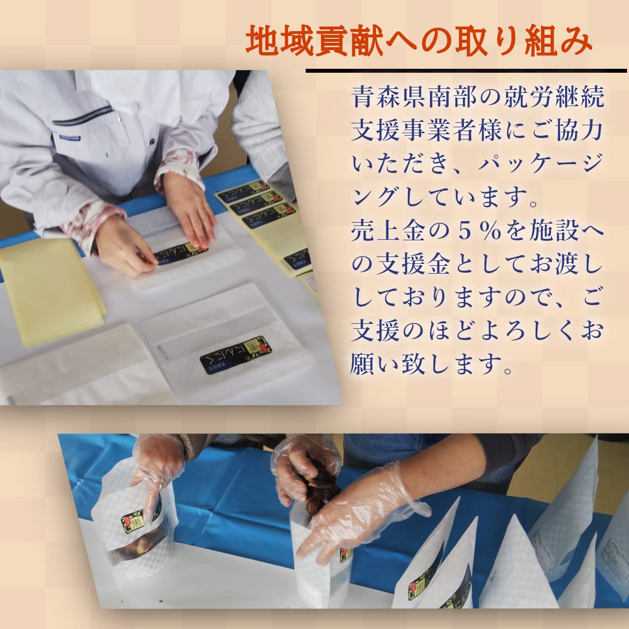 青森県南部の就労継続支援事業者様にご協力いただき、パッケージングしています。売上金の5%を施設への支援金としてお渡ししておりますので、ご支援のほどよろしくお願い致します。