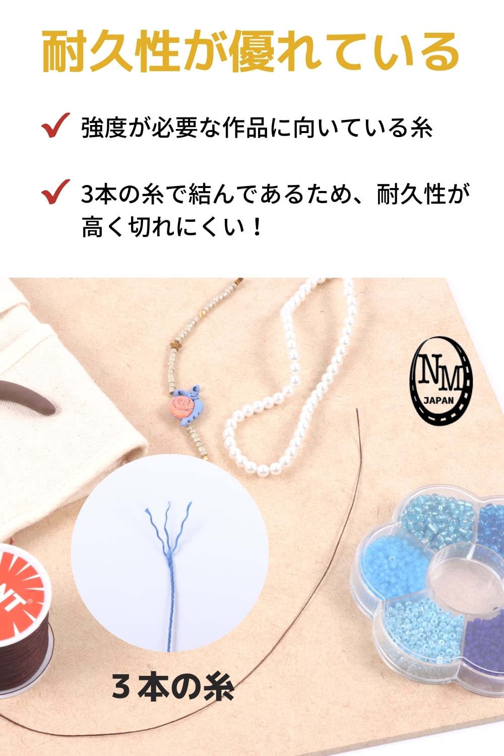 【 豊富なカラーバリエーション 】 本製品のカラーバリエーションは、ブラック、ダークブラウン、ブラウン、パープル、ブルー、ホワイト、レッドの7色でご用意しております。ハンドメイドやクラフトに合わせてお好みのカラーをお選びください♪また、本製品は、3本の糸で結んであるため、耐久性が高く切れにくくなっております。1本だけだと、切れたり、ちぎれてしまったりする恐れがありますが、3本で結んである為、強度が高く、切れにくくお使いいただきやすいアイテムです。